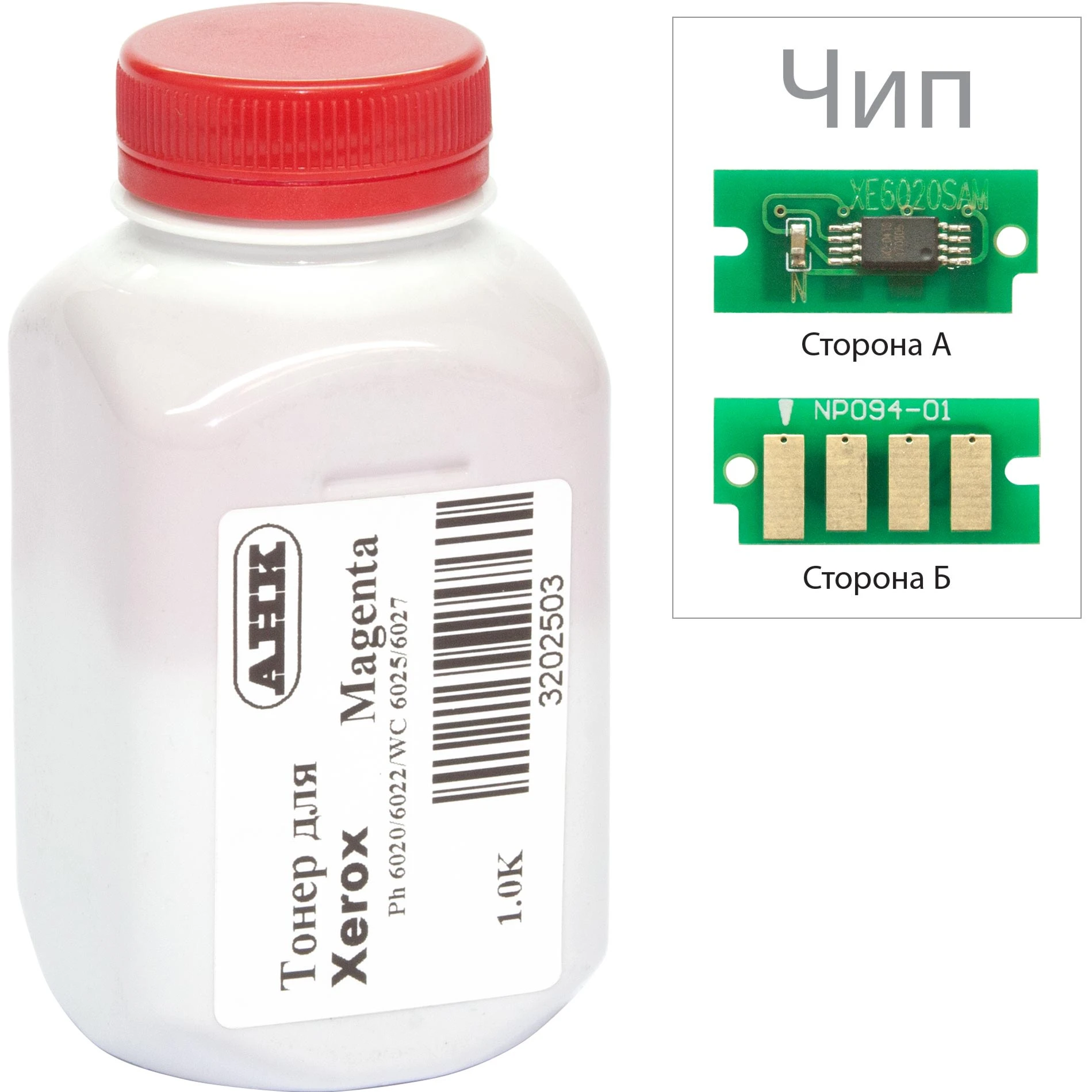 Тонер + чип АНК для Xerox Phaser 6020/6022, WC 6025 бутль 30г Magenta (3202501)