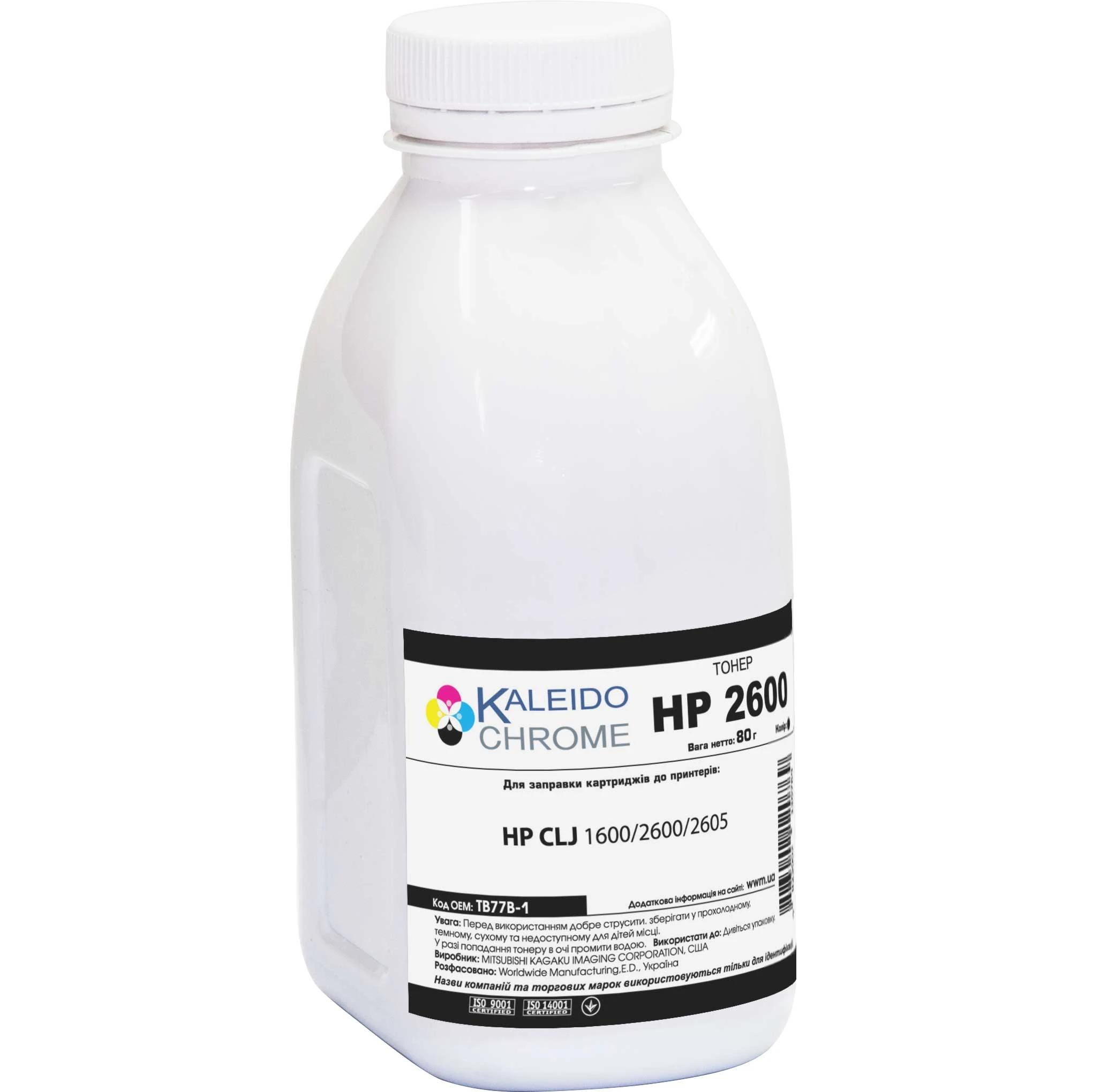 Тонер Kaleidochrome для HP CLJ 1600/2600/2605 бутль 80г Black (TB77B-1)