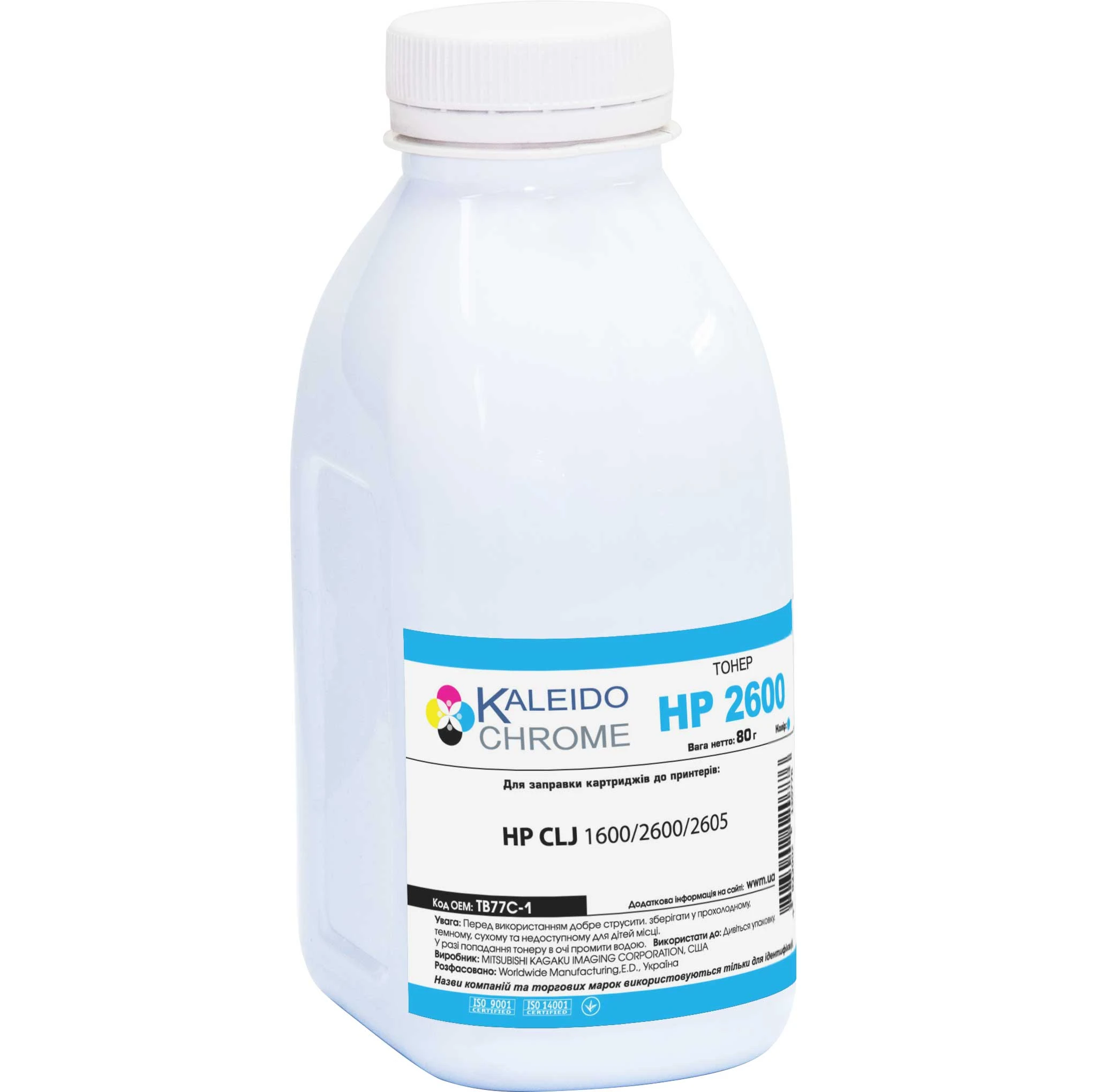 Тонер Kaleidochrome для HP CLJ 1600/2600/2605 бутль 80г Cyan (TB77C-1)
