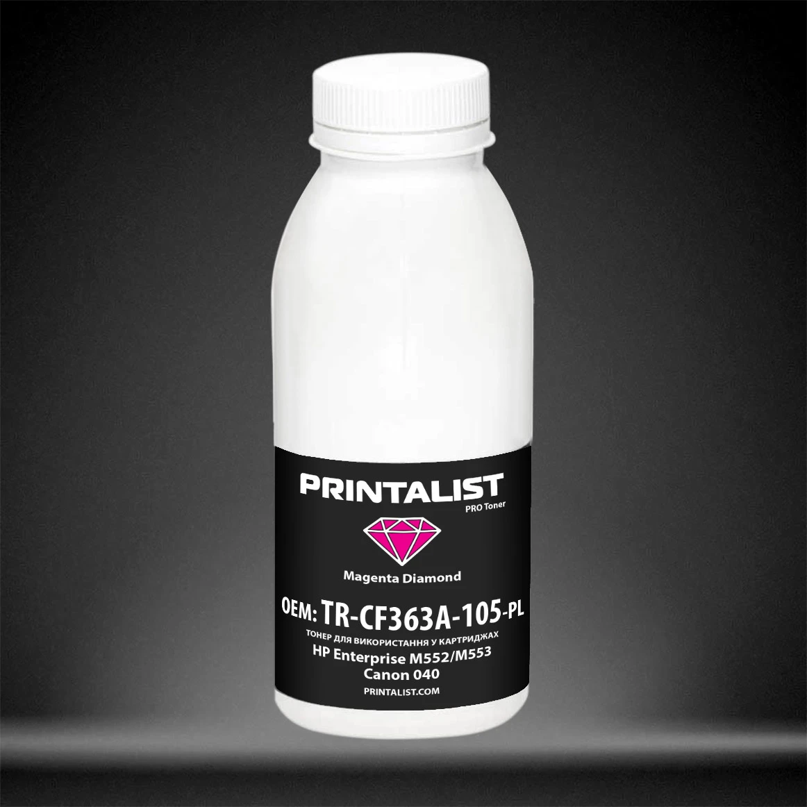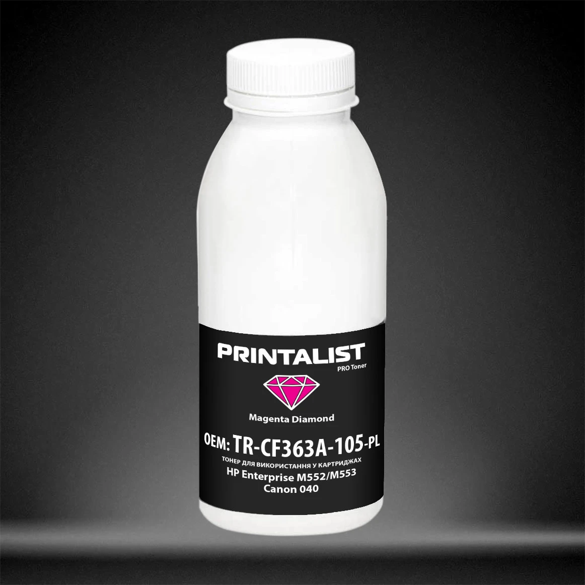 Тонер PRINTALIST для HP Enterprise M552/M553, Canon 040 бутль 105г Magenta (TR-CF363A-105-PL)