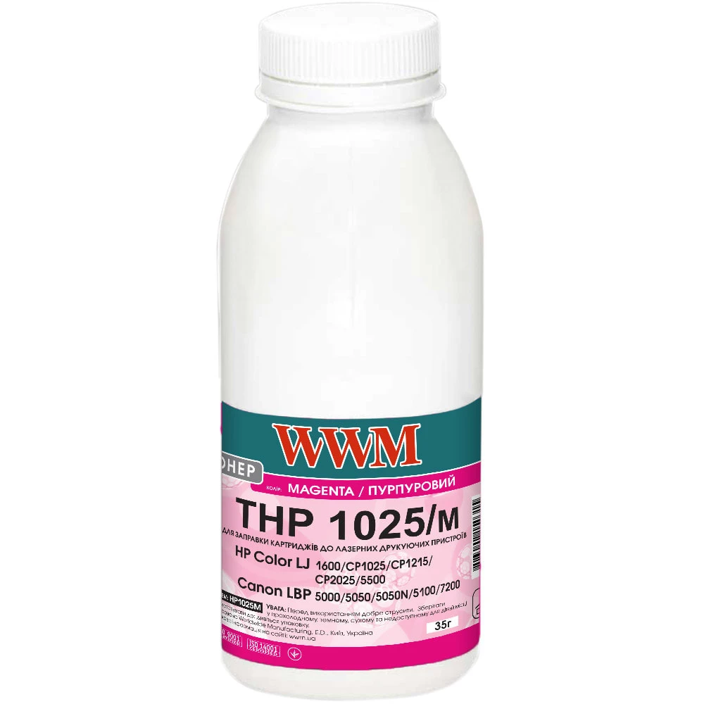 Тонер WWM для HP CLJ CP1025/Canon LBP 5050/7100 бутль 35г Magenta (HP1025M)