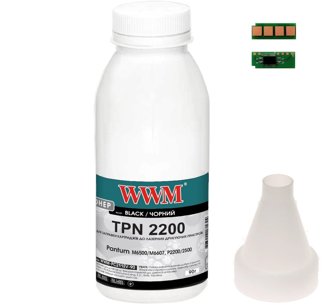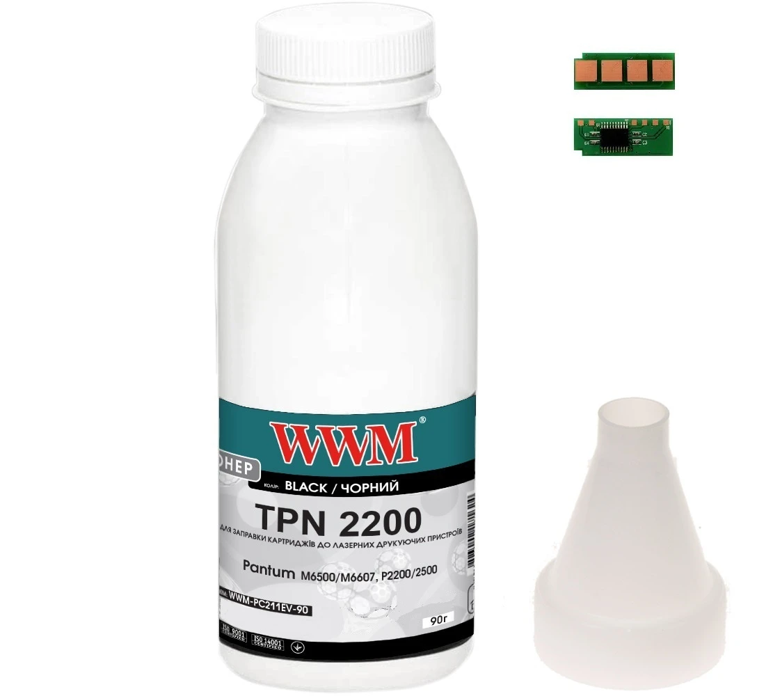 Тонер+авточіп WWM для Pantum M6500/M6607, P2200/2500 бутль 90г Black (TC-PC-211RB-WWM) з лійкою