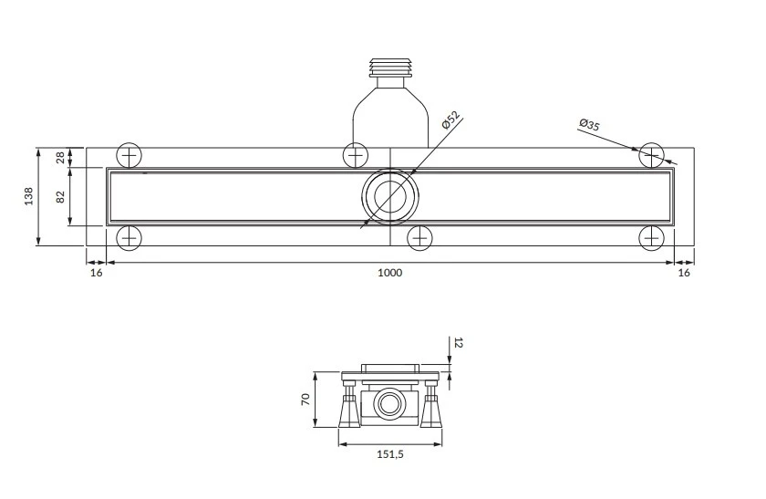 трап Omnires Lowfix для душу під плитку 100 см, чорний (LOWFIX100TBL)
