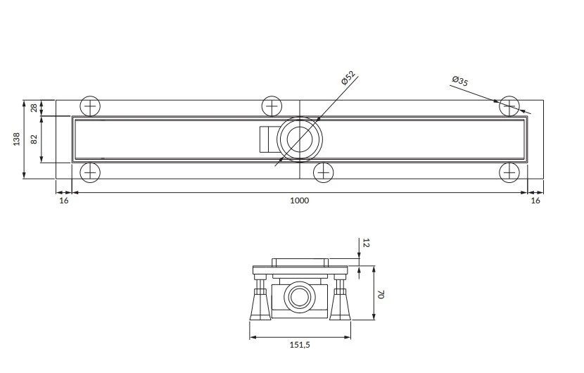 трап Omnires Lowfix для душу під плитку, 100 см (LOWFIX100TSL)