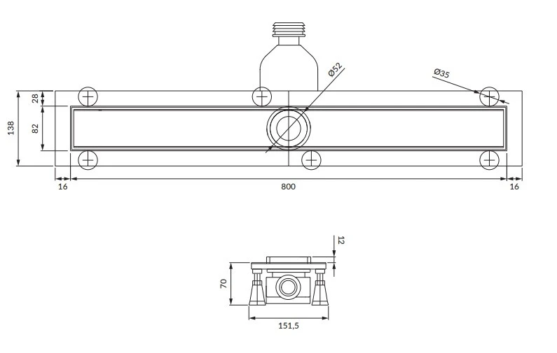 трап Omnires Lowfix для душу під плитку, 80 см, чорний (LOWFIX80TBL)