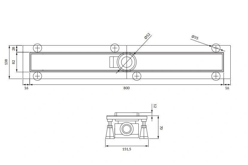 трап Omnires Lowfix для душу під плитку, 80 см (LOWFIX80TSL)