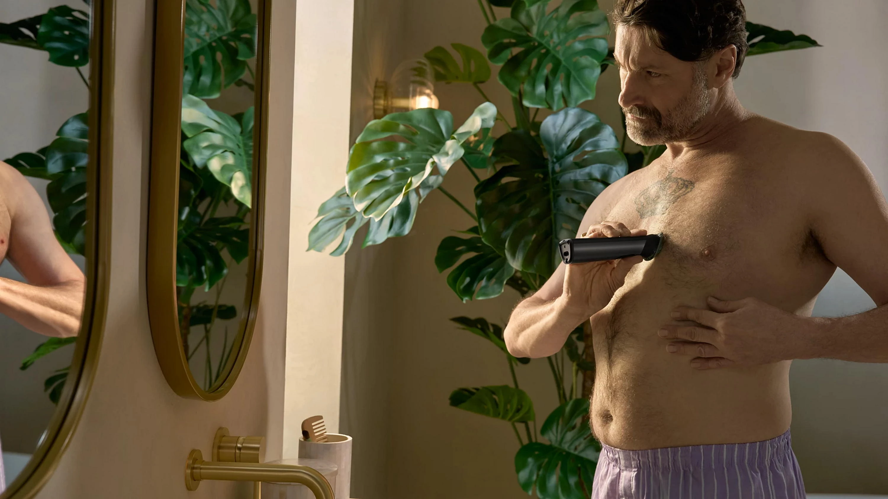 Philips Series 9000 — це універсальний тример для обличчя, голови та тіла з 19 інструментами й насадками. Завдяки технології BeardSense він адаптується до густоти волосся, забезпечуючи рівномірне підстригання. Леза із самозаточуванням і OneBlade гарантують точність і комфорт. Пристрій працює до 120 хвилин від одного заряду та повністю водонепроникний.