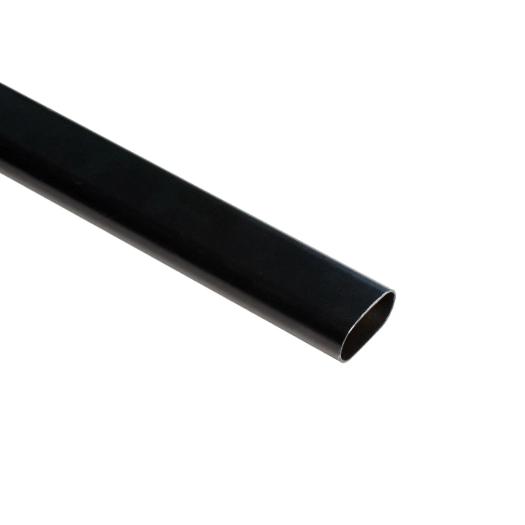 Овальна труба матового чорного кольору довжиною 3000 мм і товщиною 0,7 мм. Ідеальна для використання як штанга для вішаків у шафах.