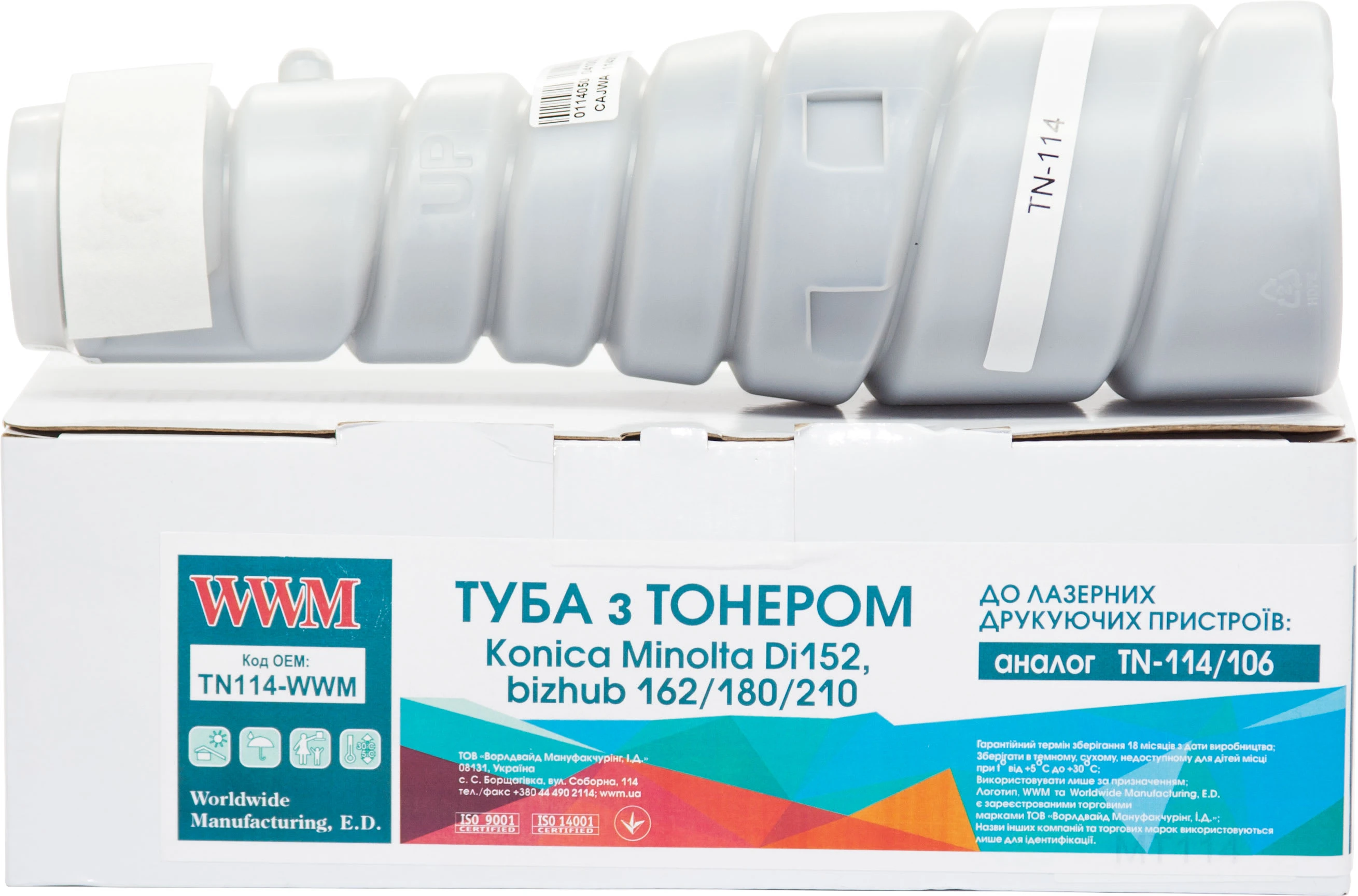 Туба з тонером WWM для Konica Minolta Di152, bizhub 162/180/210 аналог TN-114/106 Black ( 11000 ст.)