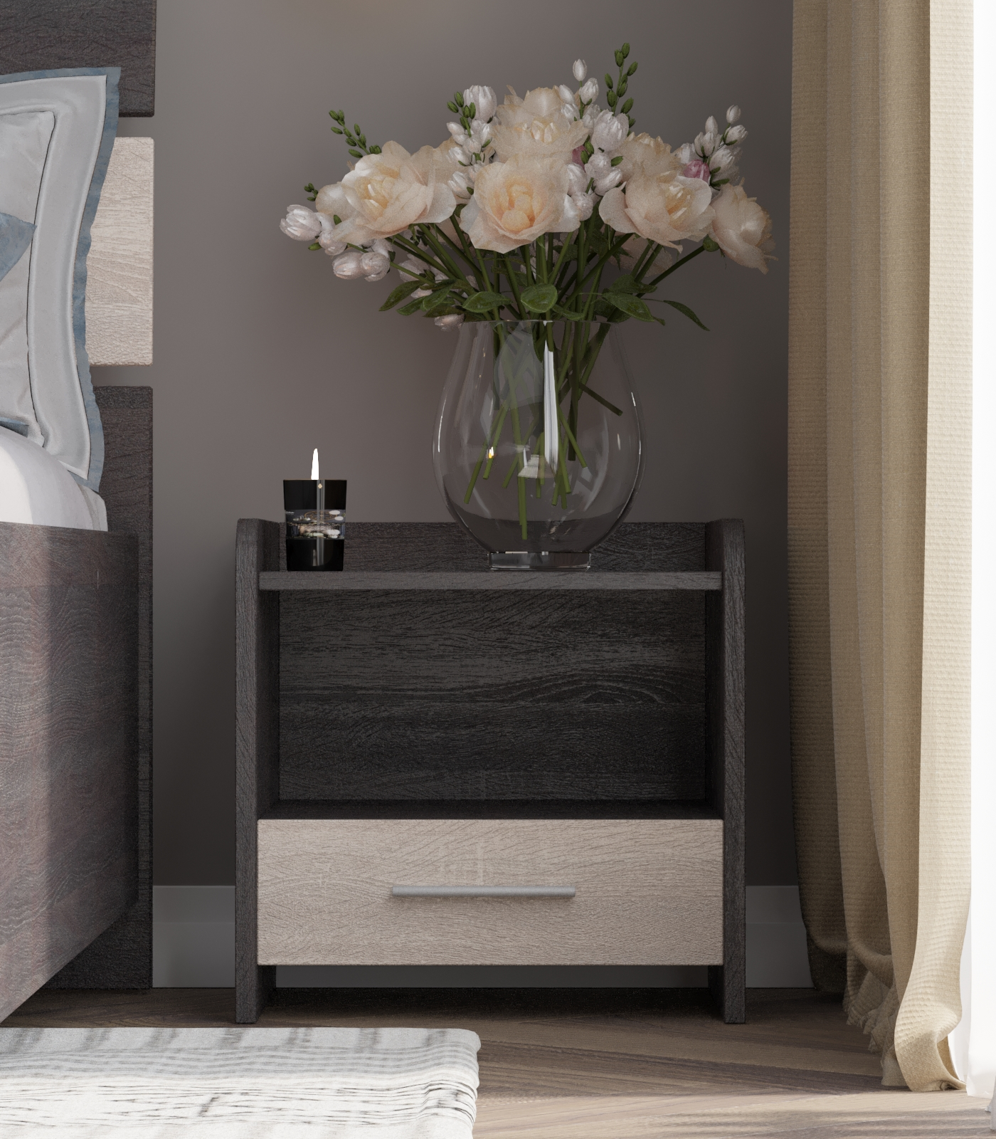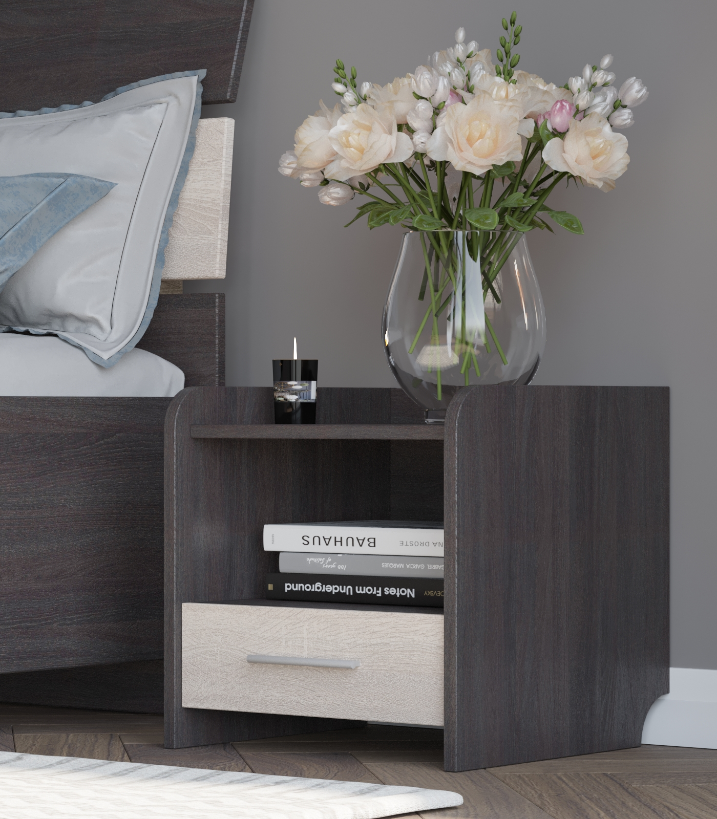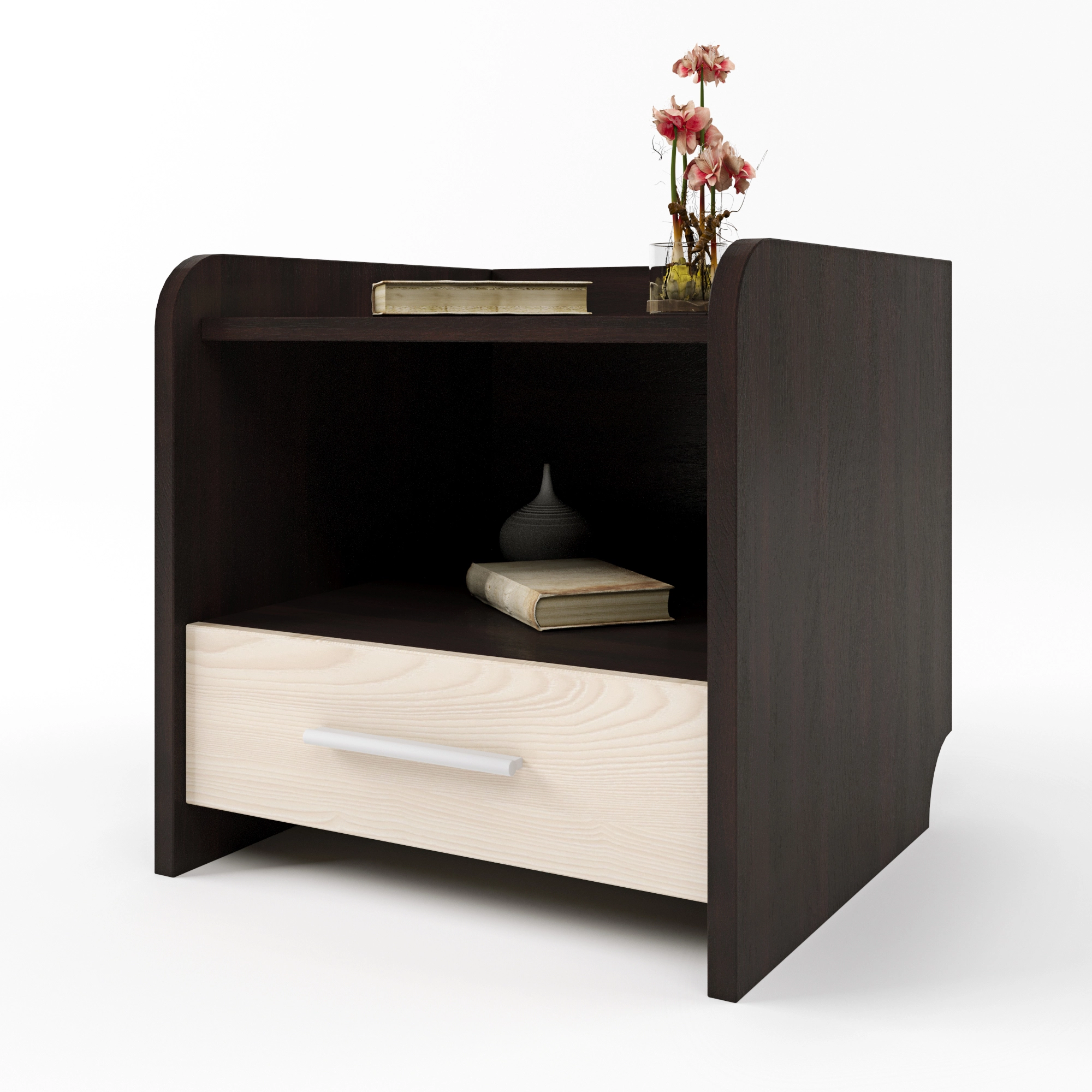 Компактна та стильна тумба Еверест Т-1 стане ідеальним доповненням будь-якої спальні. Поєднання темного венге з ніжним дубом молочним додає виробу елегантності та універсальності, що дозволяє гармонійно вписати його в класичний інтер'єр.