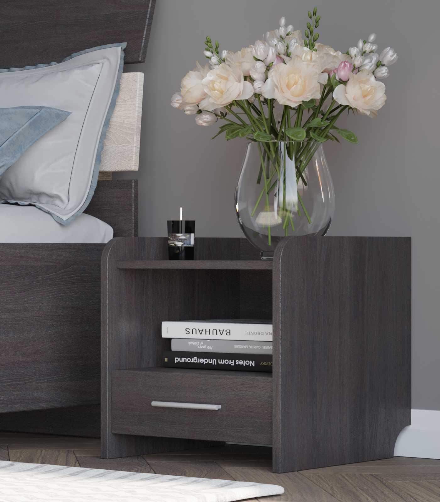 Завдяки розміру 40х40х40 см та наявності одного висувного ящика, ця тумба є не лише привабливою, а й функціональною. Вона ідеально підходить для зберігання дрібниць, які завжди мають бути під рукою, а якісні матеріали гарантують довговічність використання.