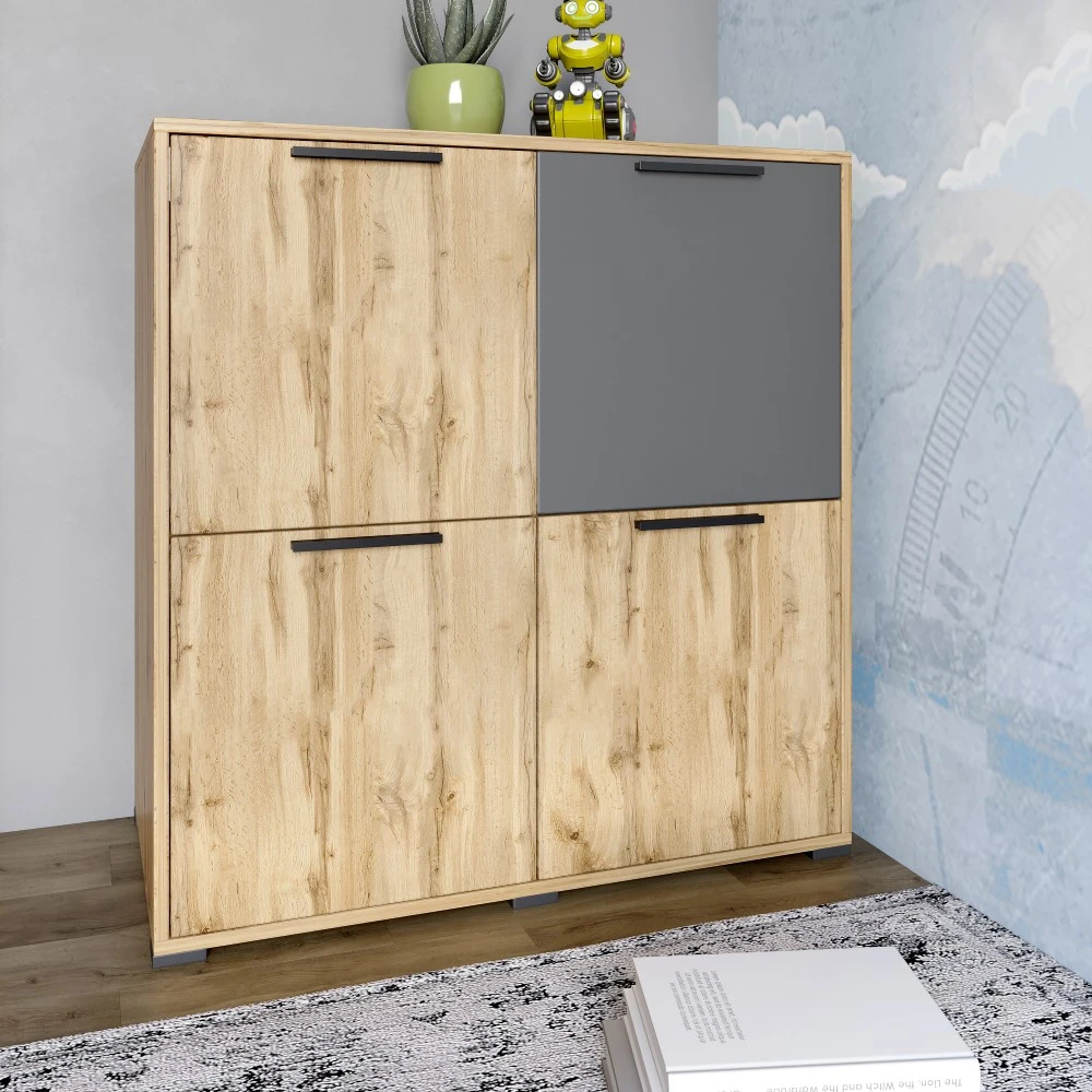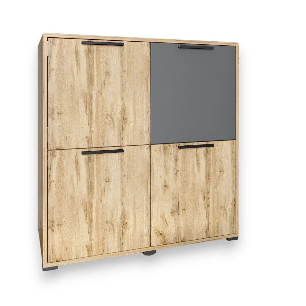 Откройте для себя стиль и функциональность с тумбой LION! Эта четырехдверная модель выполнена в элегантном сочетании дуба аппалачи и антрацитового цвета, станет не только удобным местом для хранения, но и ярким акцентом в вашем интерьере. Ее изящный дизайн и компактные размеры позволяют легко вписать тумбу в любое пространство, придавая ему современный вид.
