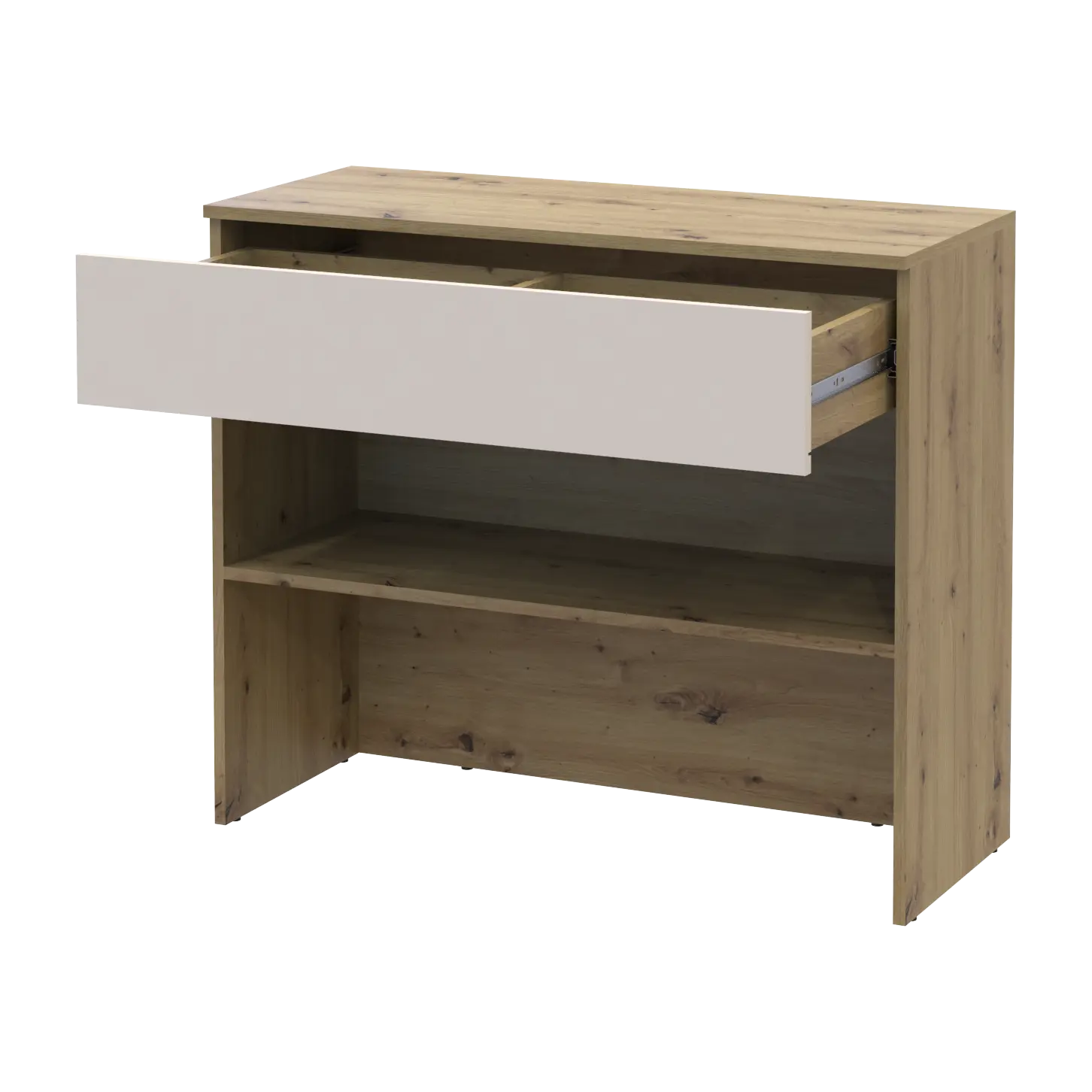 Вам набридло безладдя у передпокої? Тумба для взуття Doros Спліт стане ідеальним рішенням для організації простору. Її елегантний дизайн у відтінках дуба артизан та кашеміру не тільки доповнить інтер'єр вашого дому, але й створить затишок. Завдяки компактним розмірам, вона легко впишеться в будь-який куточок, забезпечуючи при цьому достатньо місця для вашого взуття.