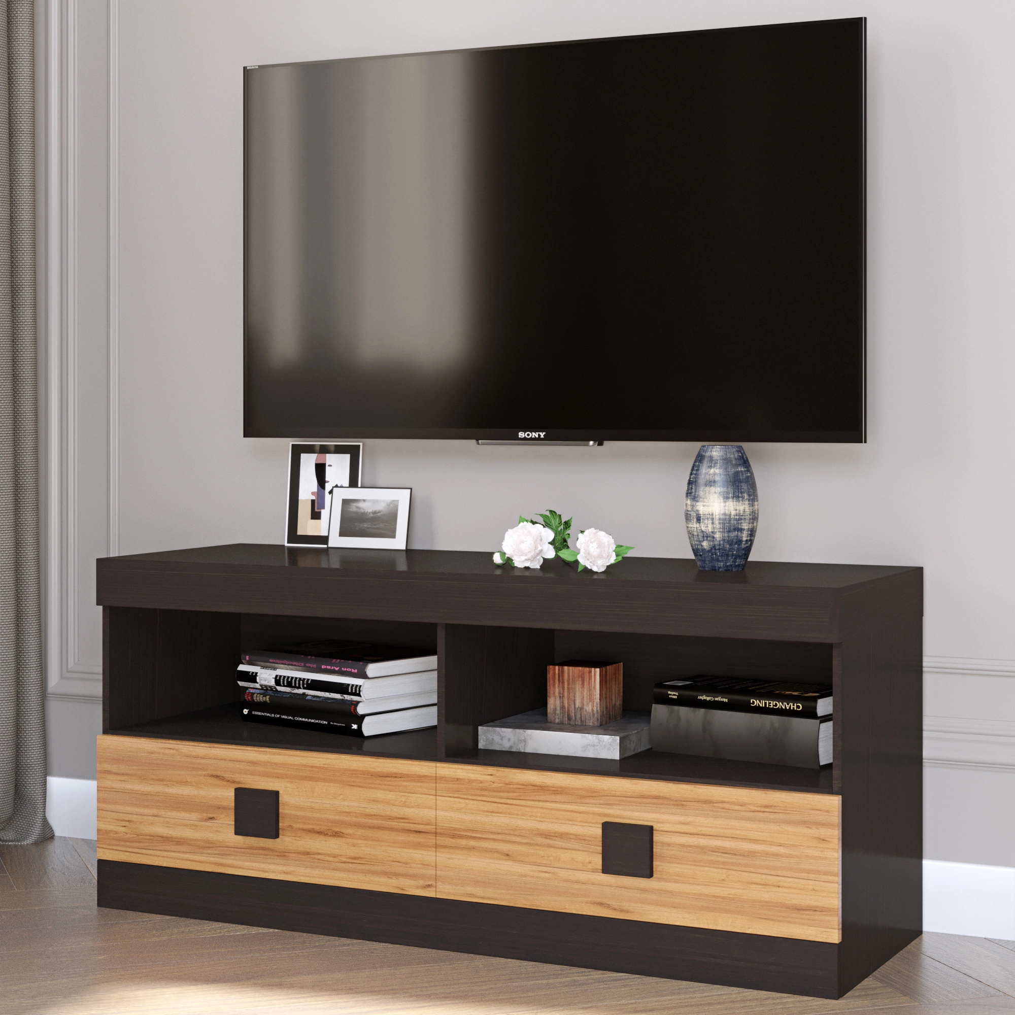 Тумба Еверест ТВ 1100 Соната 110х38х50 венге темний + дуб крафт золотий (DTM-2256)