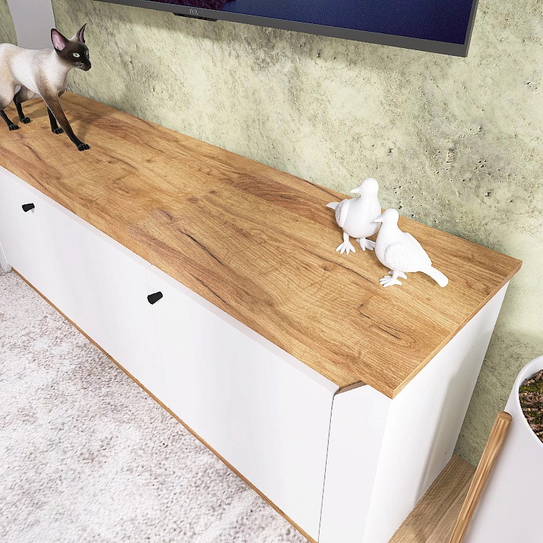 Тумба під телевізор Еверест Нордік ТВ-1500 Білий + Дуб крафт золотий (DTM-5541)