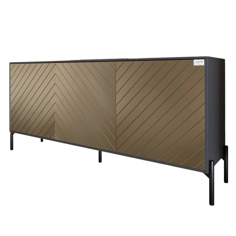 Ваша гостиная заслуживает лучшего! Тумба под телевизор LION Амарант не только создает современный вид, но и придает элегантность вашему интерьеру. Черные металлические ножки придают ей изящество, а сочетание антрацитового и перламутрового металлика делает эту тумбу настоящим акцентом в вашем пространстве.