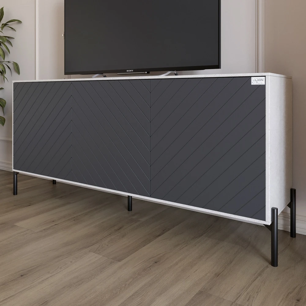 Тумба під телевізор із чорними металевими ніжками LION Амарант 168x40x76,5 см Бетон Style/Графітовий