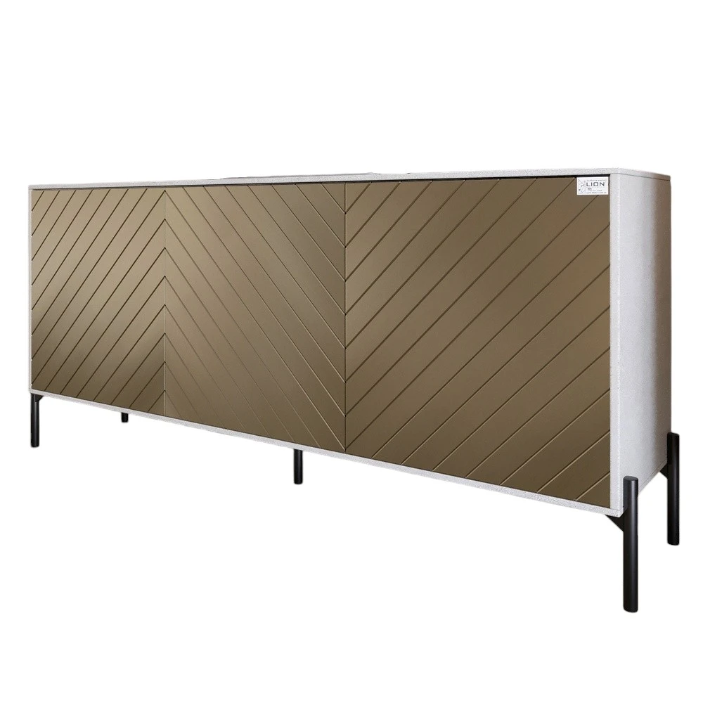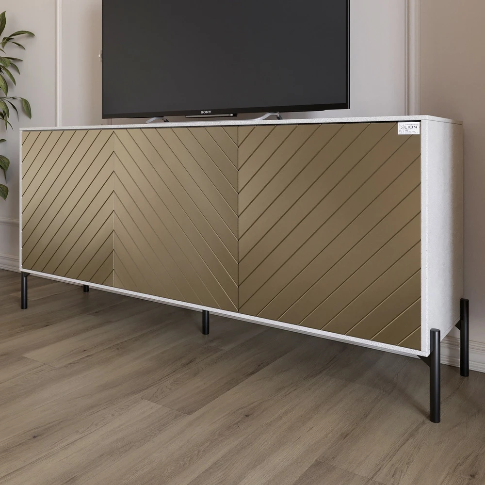 Тумба під телевізор із чорними металевими ніжками LION Амарант 168x40x76,5 см Бетон Style/Перламутро