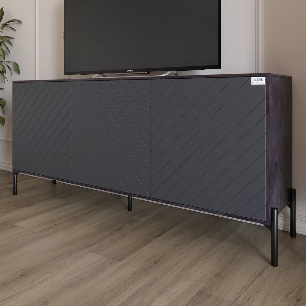 Тумба під телевізор із чорними металевими ніжками LION Амарант 168x40x76,5 см Бетон темний/Графітови