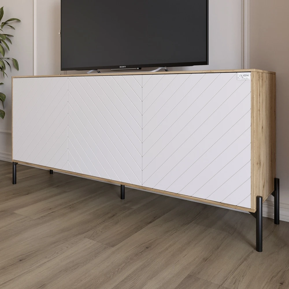 Тумба під телевізор із чорними металевими ніжками LION Амарант 168x40x76,5 см Дуб Аппалачі/Білий (LI