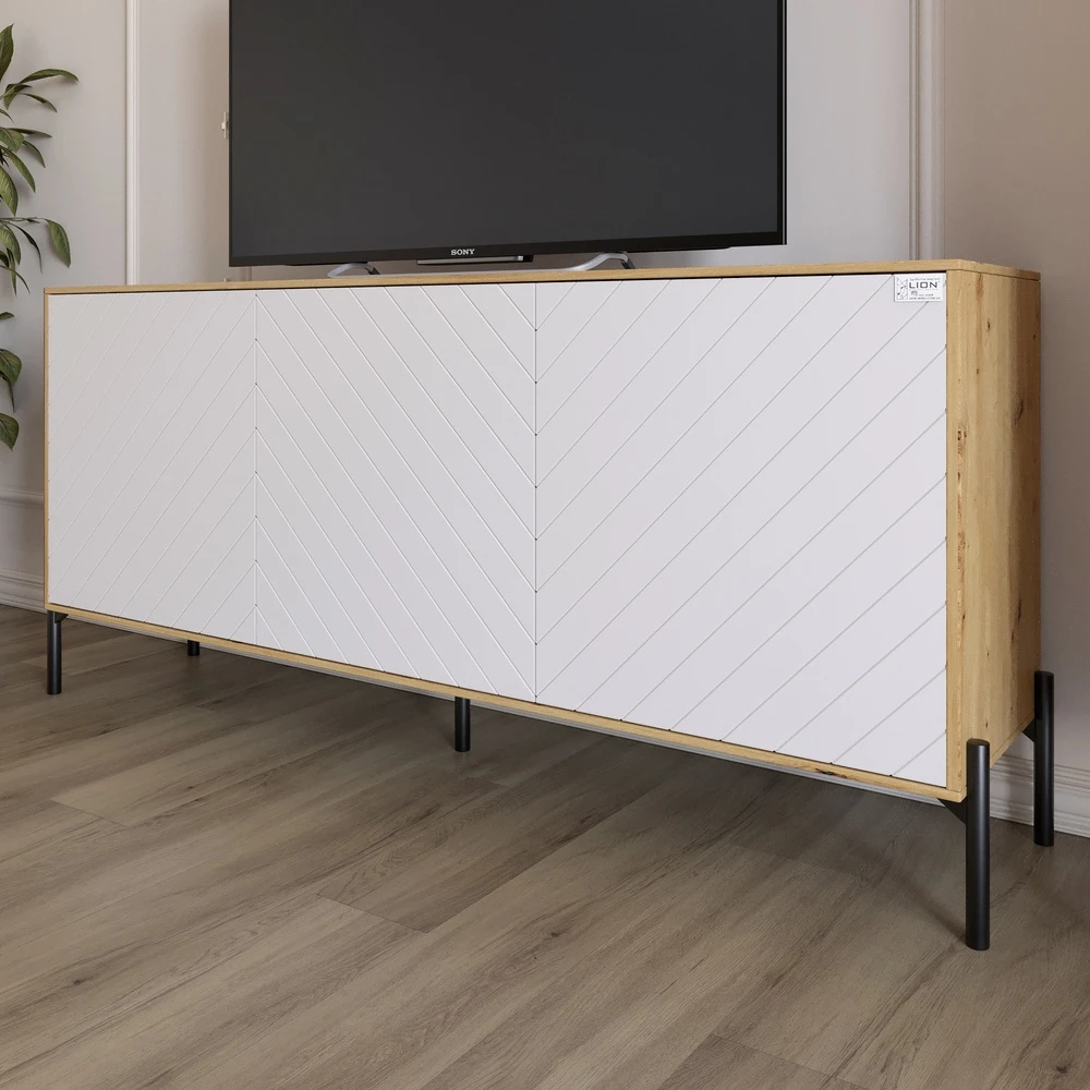 Тумба під телевізор із чорними металевими ніжками LION Амарант 168x40x76,5 см Дуб Артизан/Білий (LIO