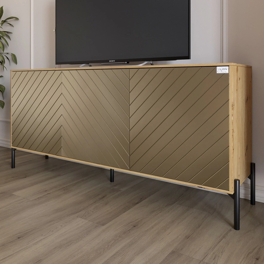 Тумба під телевізор із чорними металевими ніжками LION Амарант 168x40x76,5 см Дуб Артизан/Перламутро