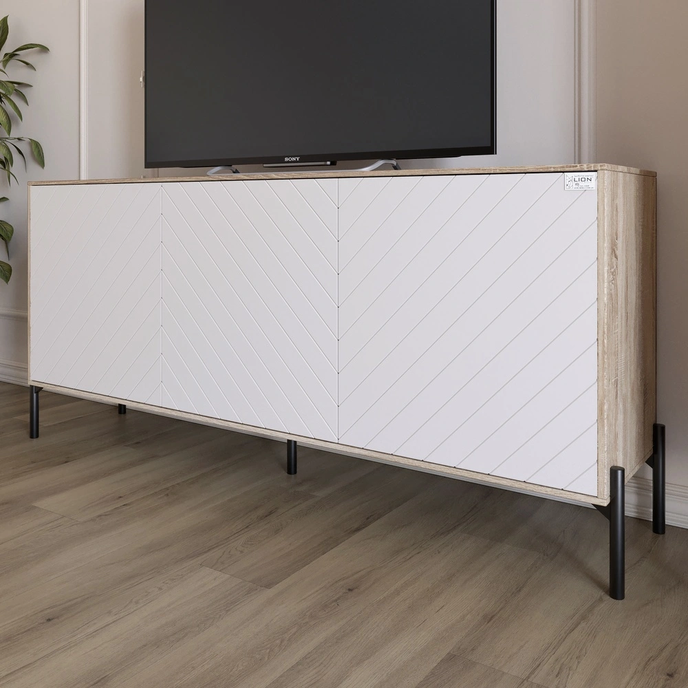 Тумба під телевізор із чорними металевими ніжками LION Амарант 168x40x76,5 см Дуб сонома/Білий (LION