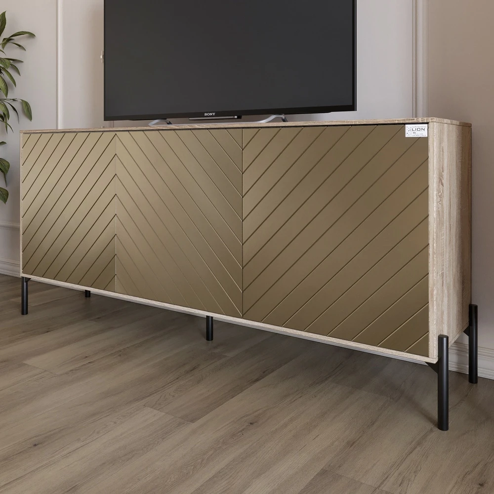 Вам надоела обычная мебель? Тумба под телевизор LION Амарант станет ярким упором в вашем интерьере! Ее современный дизайн сочетает в себе элегантность и функциональность, что делает ее идеальным выбором для любой гостиной. Черные металлические ножки придают ей стойкость и изящество, а цветовое решение из дуба сонома и перламутрового металлика создает стильный контраст.