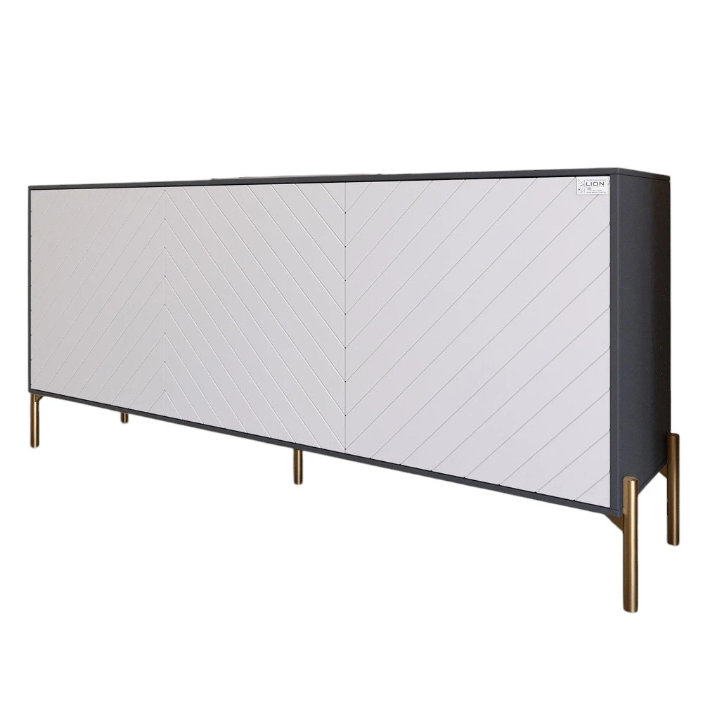 Откройте для себя идеальное сочетание современного дизайна и практичности с тумбой под телевизор LION. Ее элегантные линии и выразительный антрацитовый цвет в сочетании с белыми акцентами делают тумбу настоящим произведением искусства, которое органично впишется в любой интерьер. Золотые металлические ножки добавляют нотки роскоши, подчеркивая стиль вашего дома. Эта тумба не только эстетически привлекательна, но и чрезвычайно функциональна. Благодаря своим размерам она обеспечивает достаточно места для телевизора, а также для хранения медиа-аппаратуры, книг или других аксессуаров. Умная планировка пространства позволяет поддерживать порядок и организованность в вашей гостиной.