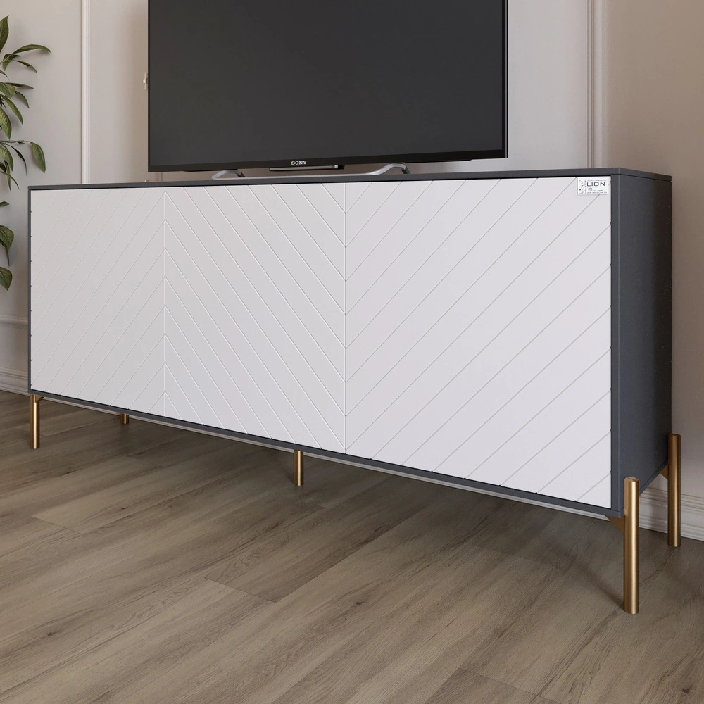 Тумба під телевізор із золотими металевими ніжками LION Амарант 168x40x76,5 см Антрацит/Білий (LION-