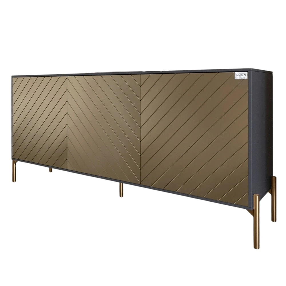 Откройте для себя идеальное сочетание элегантности и практичности с тумбой под телевизор LION Амарант. Ее современный дизайн в антрацитном цвете с перламутровым металликом привлекает внимание и придает изысканность любому интерьеру. Золотые металлические ножки придают изделию особый шарм и стойкость, что делает его не только красивым, но и надежным. Эта тумба, размером 168x40x76,5 см, идеально подходит для размещения телевизора и других медиаустройств. Просторный верхний этаж обеспечивает достаточно места для вашей техники, а также для декоративных элементов, таких как фоторамки или вазы. Внутренние полки позволяют организовать пространство и сохранять все необходимое под рукой.