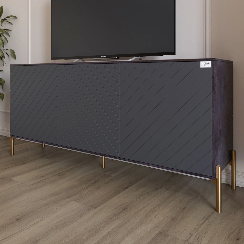 Тумба під телевізор із золотими металевими ніжками LION Амарант 168x40x76,5 см Бетон темний/Графітов