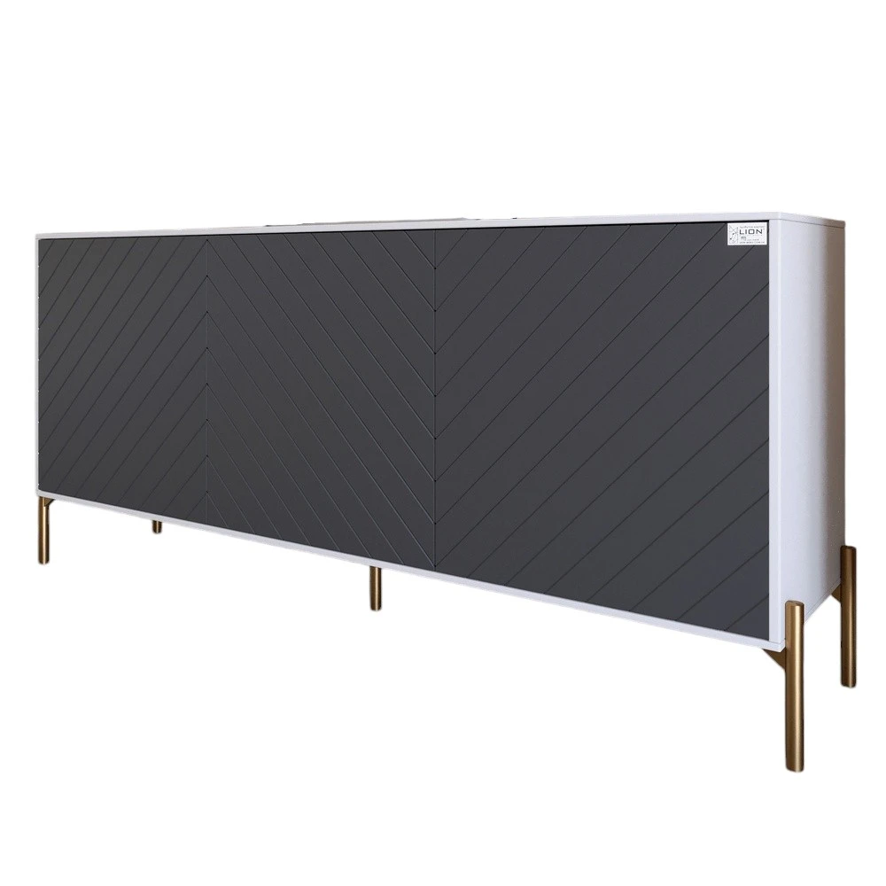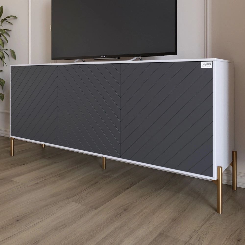 Ваша гостиная заслуживает лучшего! Тумба под телевизор LION Амарант станет идеальным дополнением к вашему интерьеру, придавая ему современный и элегантный вид. Золотые металлические ножки придают изделию не только стильный вид, но и обеспечивают надежность и стойкость, что делает эту тумбу отличным выбором для любого дома. Ее цветовое исполнение в сочетании с белым и графитовым оттенками придаст вашему пространству изысканность и современный шик. Наряду с функциональностью этот предмет мебели станет ярким акцентом вашей комнаты.