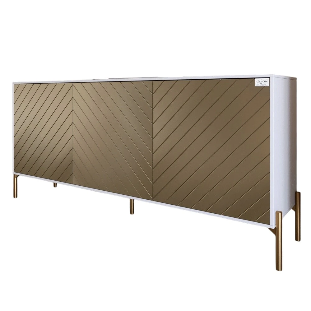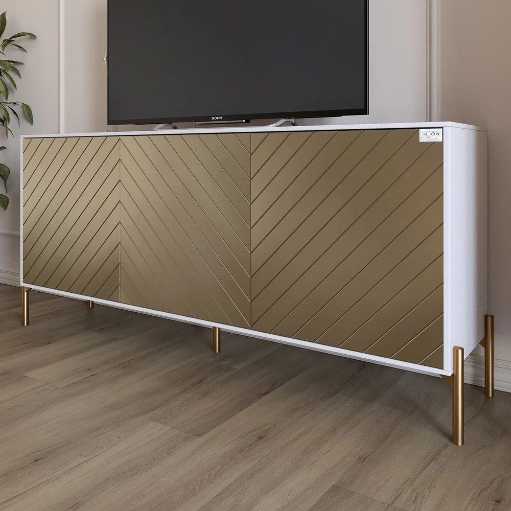 Тумба під телевізор із золотими металевими ніжками LION Амарант 168x40x76,5 см Німфея Альба (білий)/