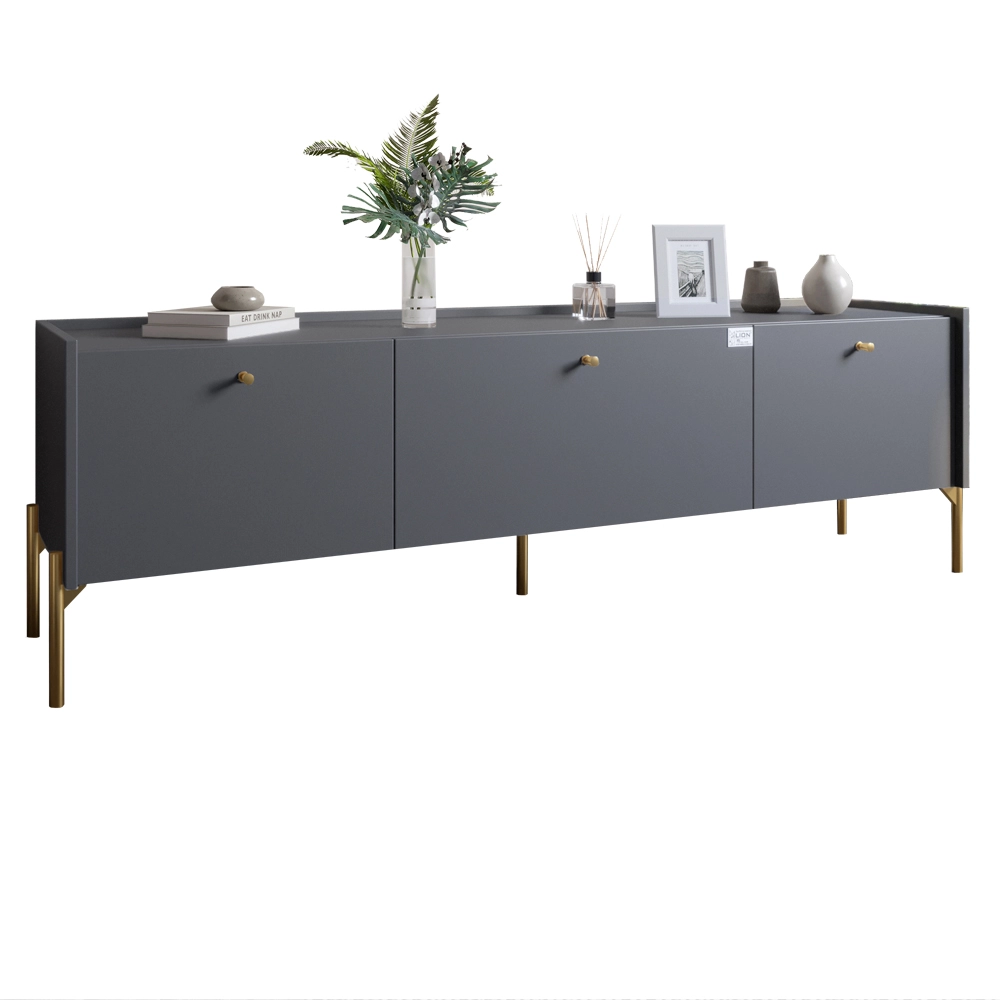 Тумба під телевізор на 3 шухляди LION Wood з золотими ніжками 160х65х40 см Антрацит (LION-042987)