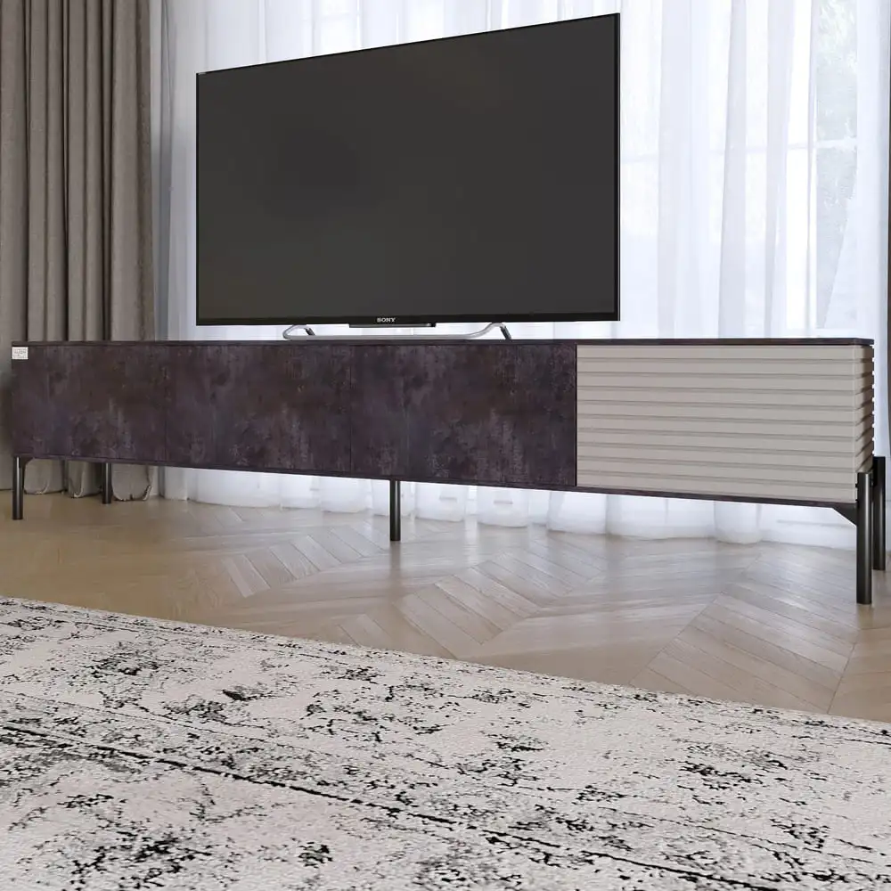 Приветствуем вас в мире современного дизайна! Тумба под телевизор LION – это идеальное сочетание элегантного вида и практичности. Ее стильный дизайн в цветах темного бетона и кашемира добавляет нотку современности любому интерьеру, делая вашу гостиную еще более привлекательной.