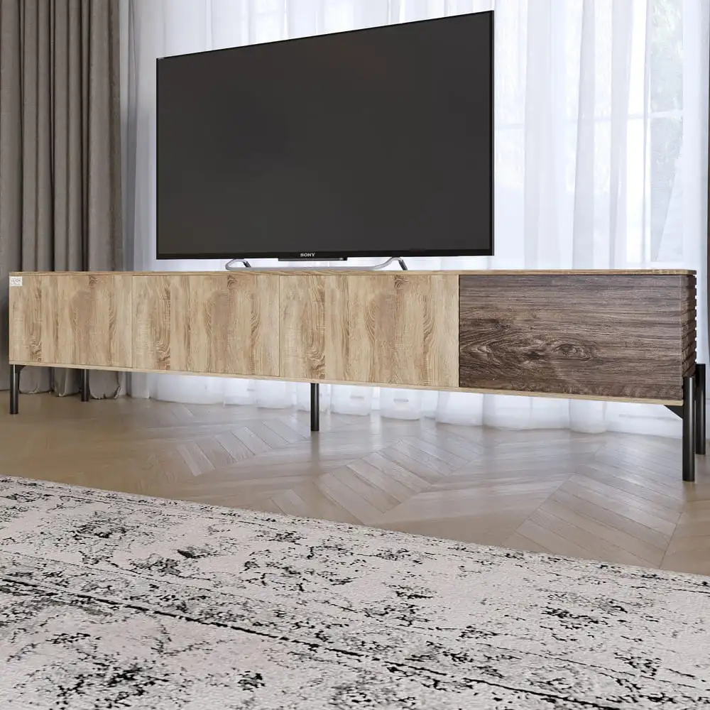 Ваша гостиная заслуживает лучшего! Тумба под телевизор LION с изящным дизайном станет идеальным дополнением любого интерьера. Ее современный вид в сочетании с натуральными материалами не только подчеркнет стиль вашего пространства, но и создаст уютную атмосферу для отдыха и развлечений. Благодаря черным металлическим ножкам эта тумба не только выглядит стильно, но и обеспечивает надежность и стабильность. Вы сможете безопасно разместить свой телевизор и другие электронные устройства, не беспокоясь об их безопасности. Каждая деталь продумана до мелочей, чтобы вы могли наслаждаться комфортом и удобством.