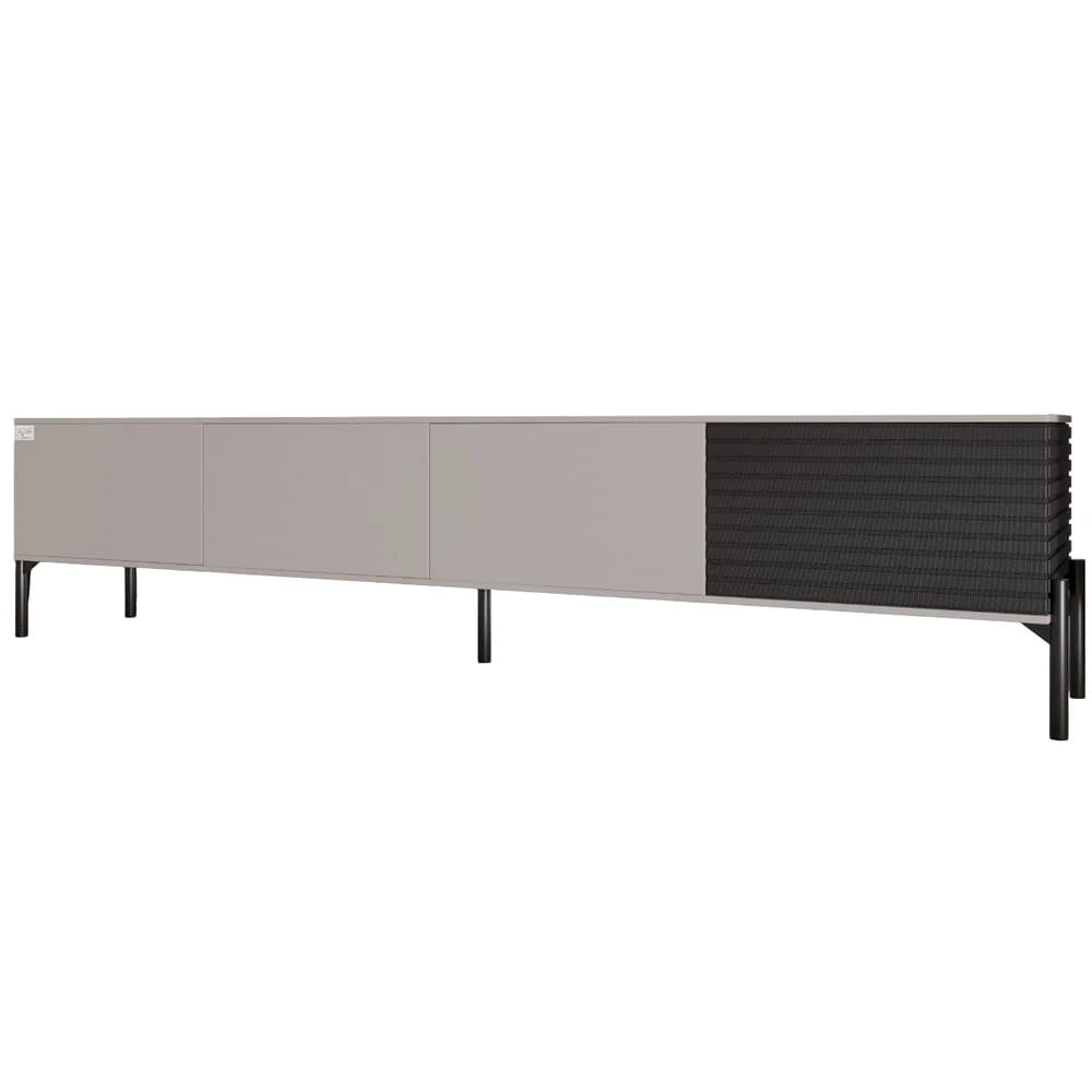 Откройте для себя идеальное решение для вашего интерьера с тумбой под телевизор LION. Изящный мебельный элемент сочетает в себе современный дизайн и практичность, что делает его идеальным дополнением для любой комнаты. Черные металлические ножки придают тумбе стойкость и изящество, а цветовое оформление в Грей Кашемир и Асфальт придает элегантности.