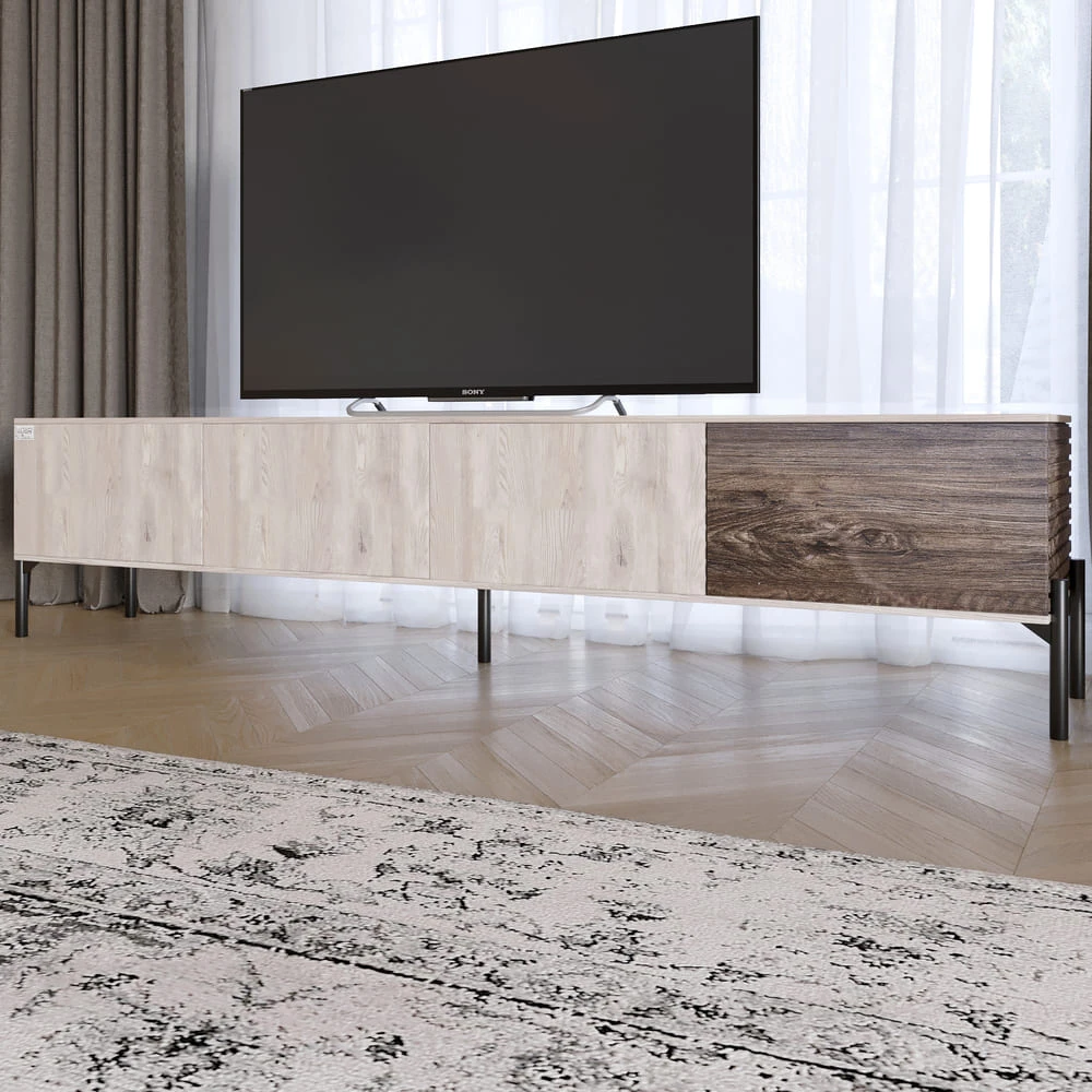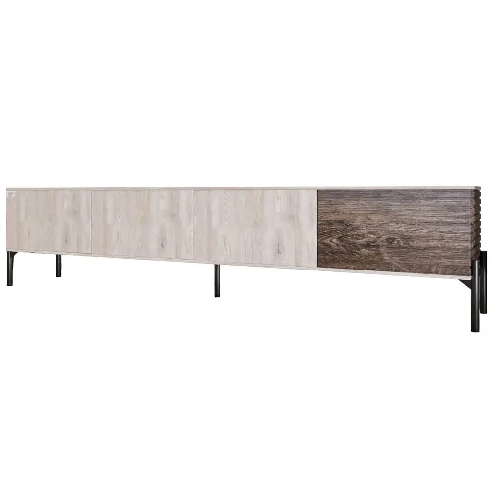 Ваша гостиная заслуживает лучшего, и тумба под телевизор LION станет ярким акцентом в любом интерьере. Благодаря своему современному дизайну она не только обеспечит надежную поддержку для вашего телевизора, но и придаст элегантности вашему пространству. Черные металлические ножки создают впечатление легкости, а дымчатый цвет Самоа придает ей изысканный вид.