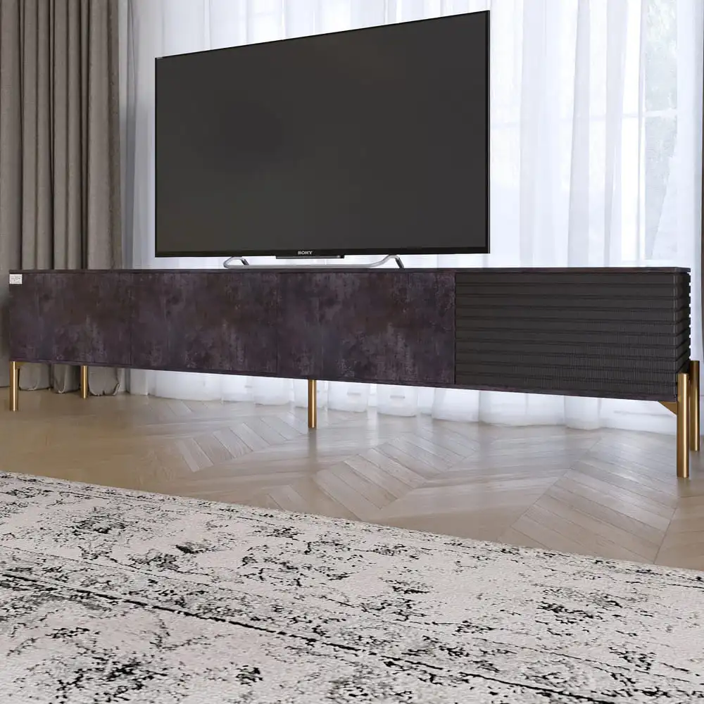 Тумба під телевізор на золотих металевих ніжках LION Грей Бетон темний/Асфальт (LION-042488)