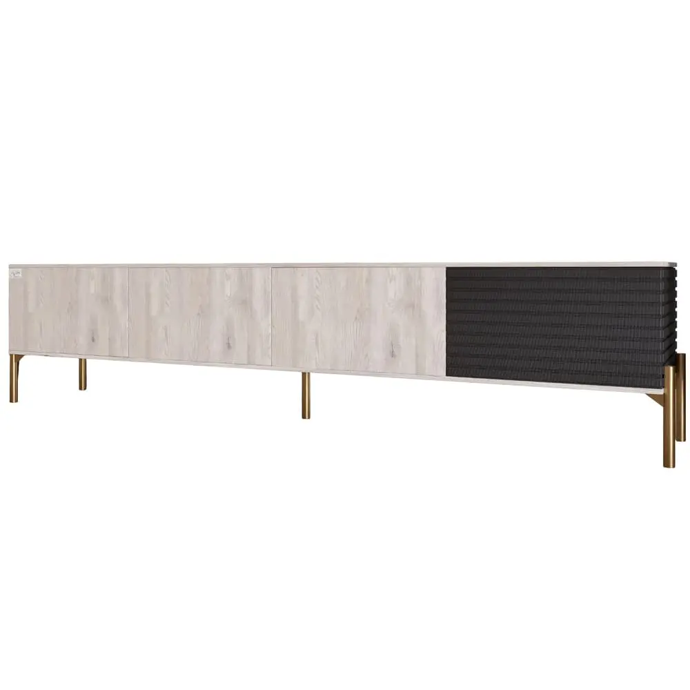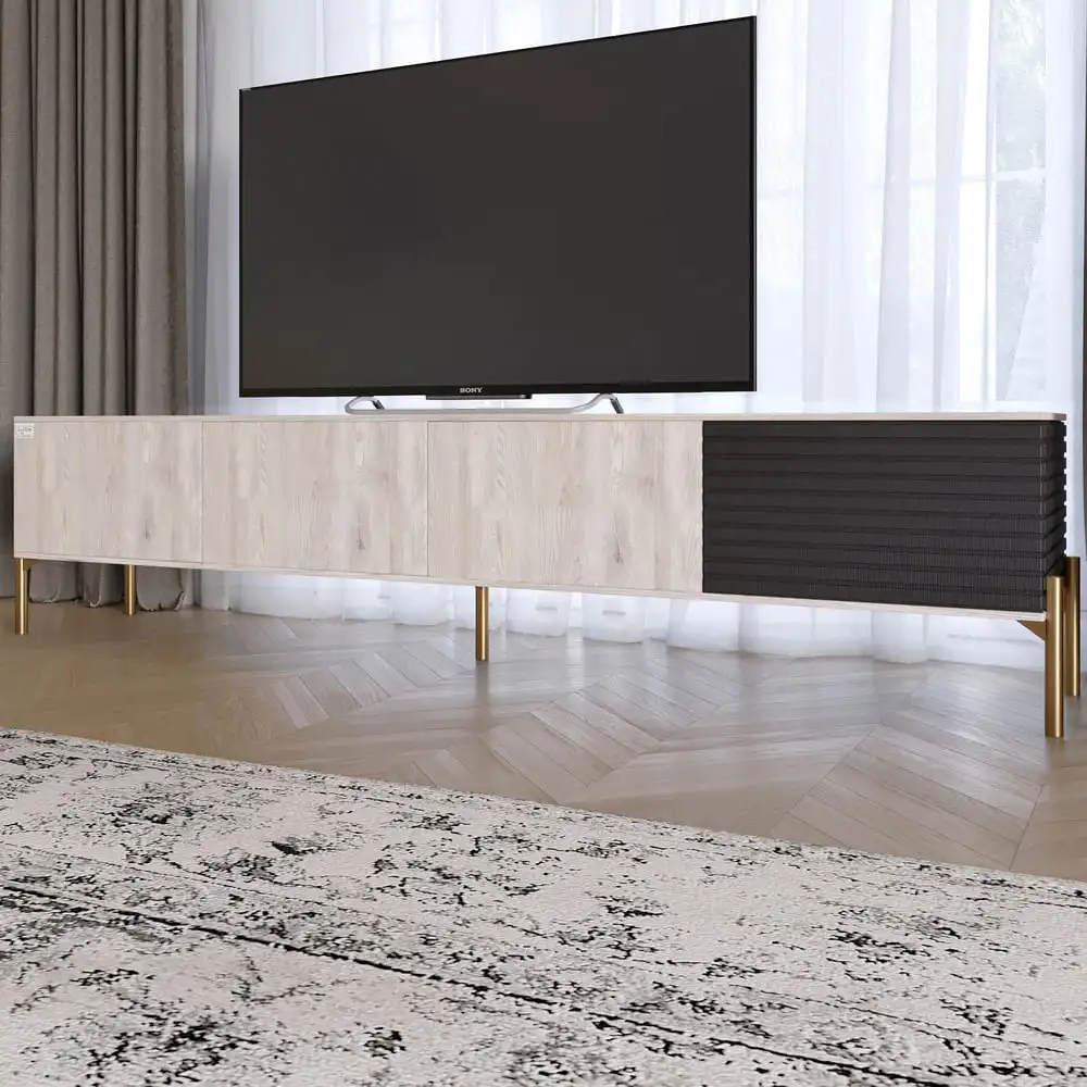 Откройте для себя идеальное сочетание стиля и функциональности с тумбой под телевизор LION. Ее изящный дизайн в цвете Грей Самоа дымчатый и Асфальт создает современный вид, который легко впишется в любой интерьер. Благодаря золотым металлическим ножкам, эта тумба не только придает элегантности, но и обеспечивает надежную поддержку для вашего телевизора.