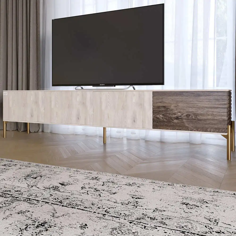 Тумба під телевізор на золотих металевих ніжках LION Грей Самоа димчастий/Дерево (LION-042544)
