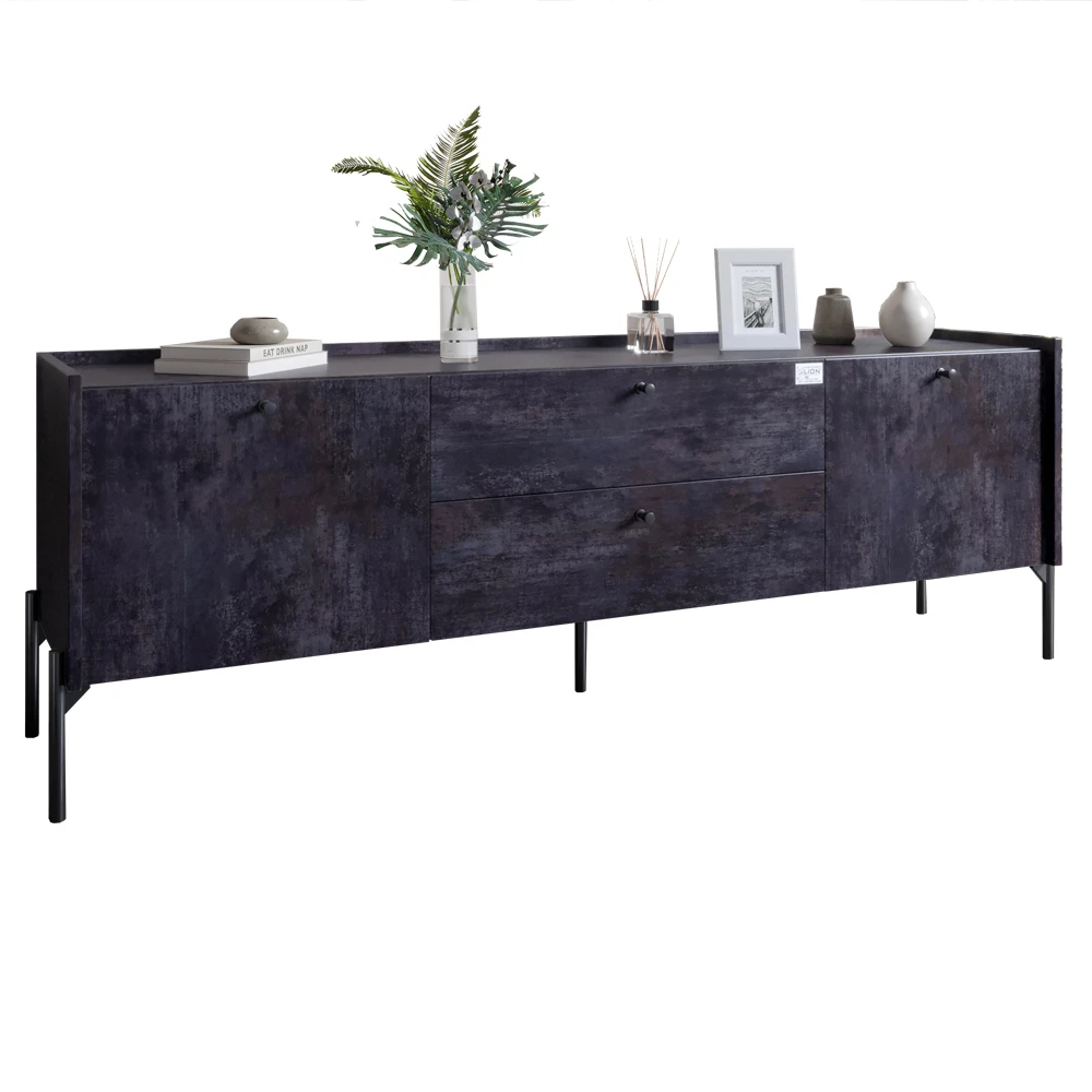 Тумба під телевізор з шухлядами LION Wood з чорними ніжками 180х50х40 см Бетон темний (LION-043124)