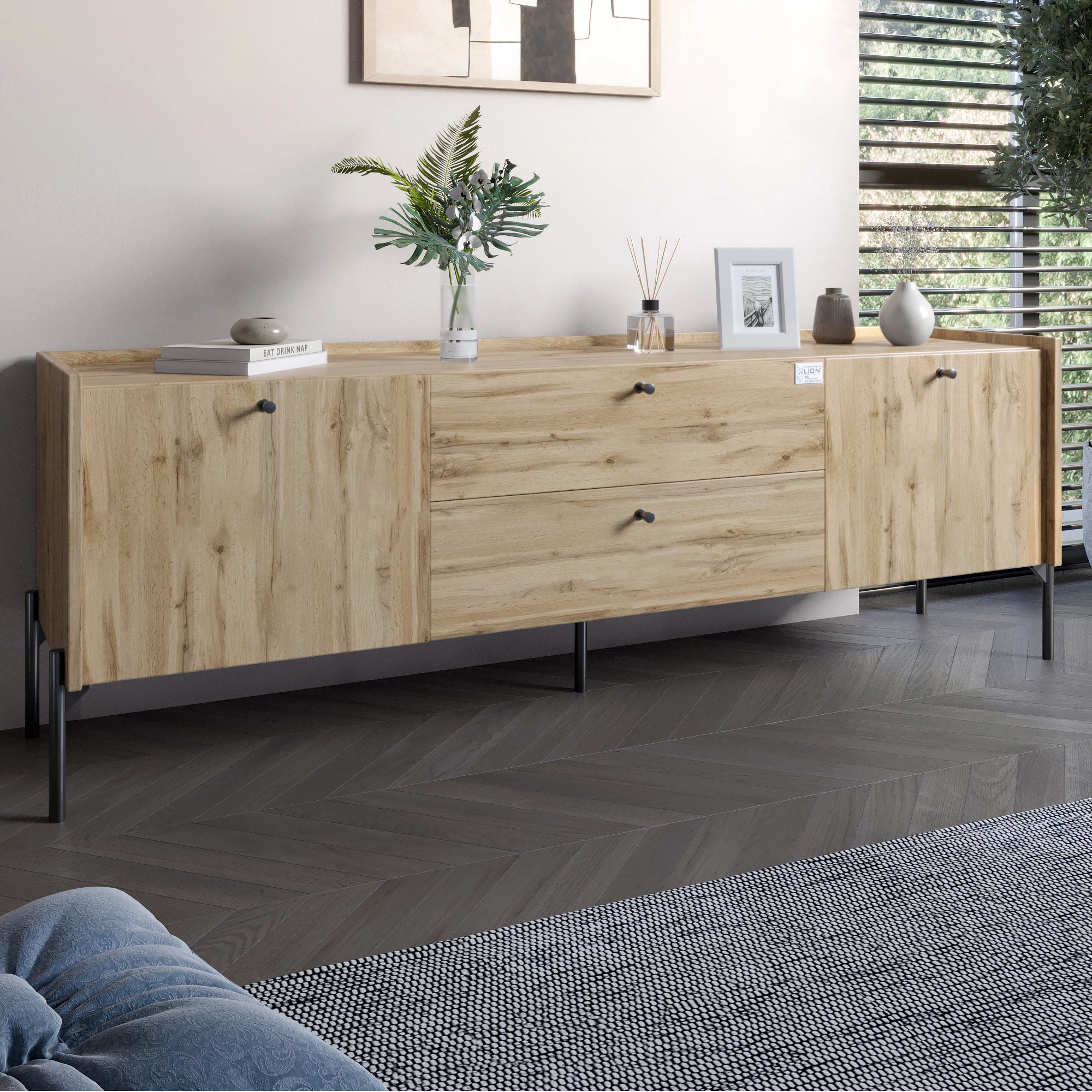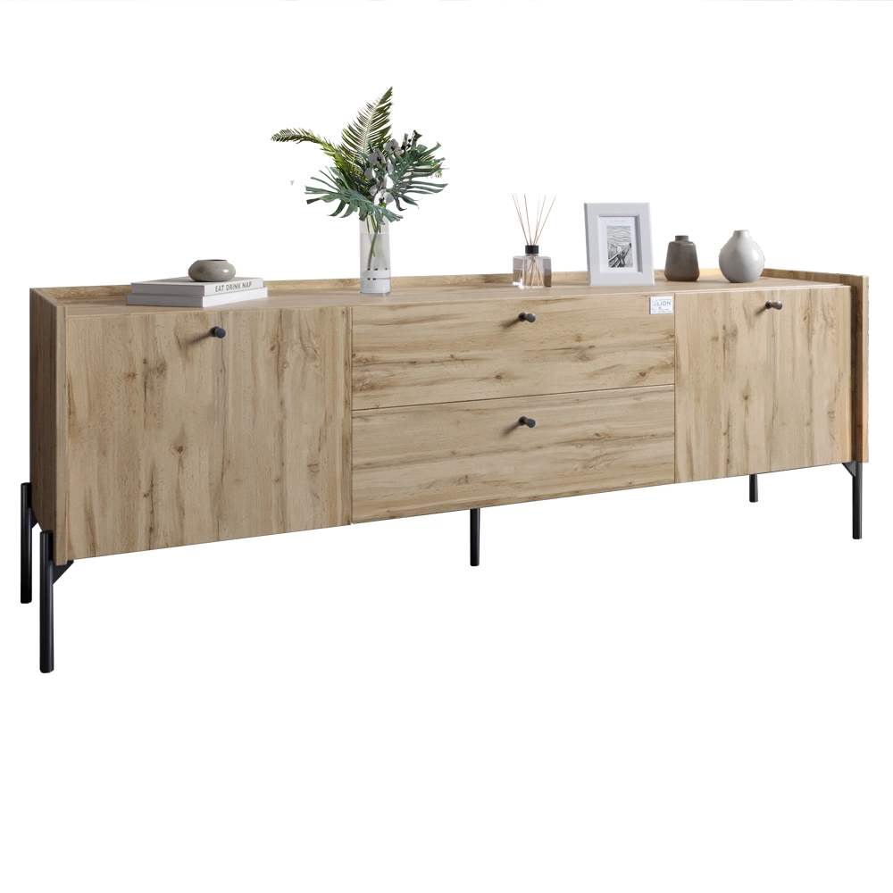 Тумба під телевізор з шухлядами LION Wood з чорними ніжками 180х50х40 см Дуб Аппалачі (LION-043126)