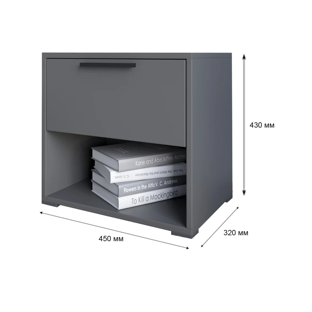 Тумба приліжкова LION Краш з висувною шухлядою Граніт сірий (LION-044129)