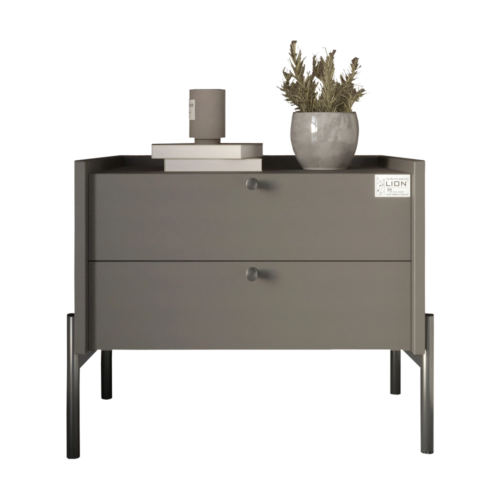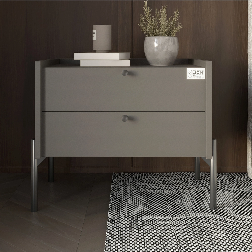 Прикроватная тумба LION Wood с двумя ящиками Антрацит (чёрные ножки) (LION-041335)