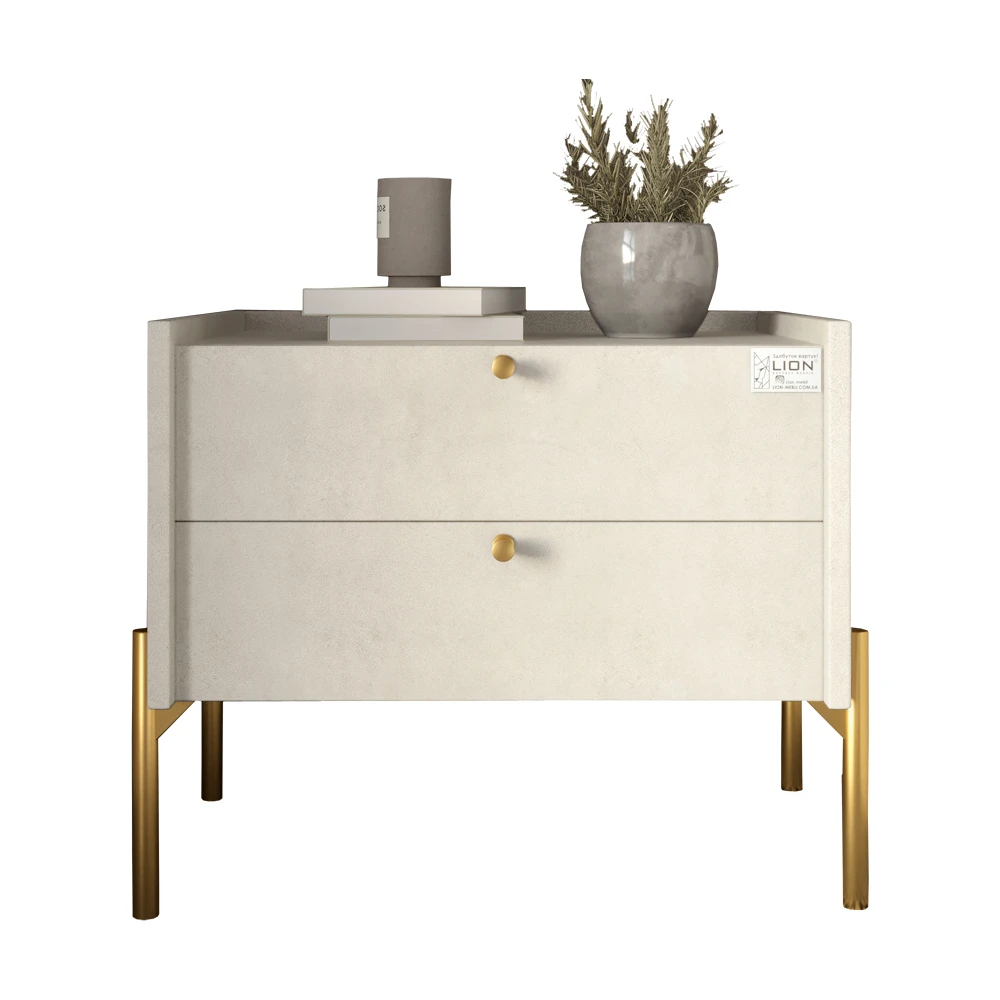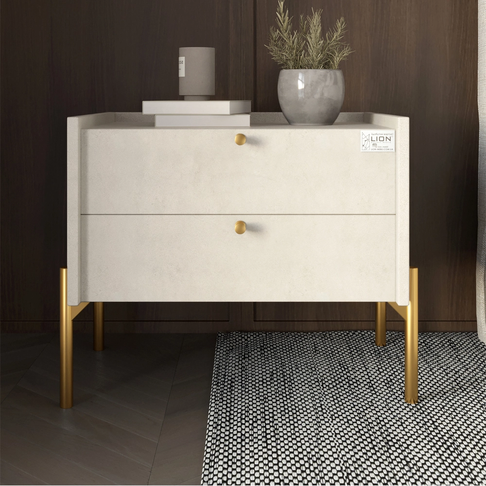 Тумба приліжкова LION Wood з двома шухлядами Бетон style (золоті ножки) (LION-041338)