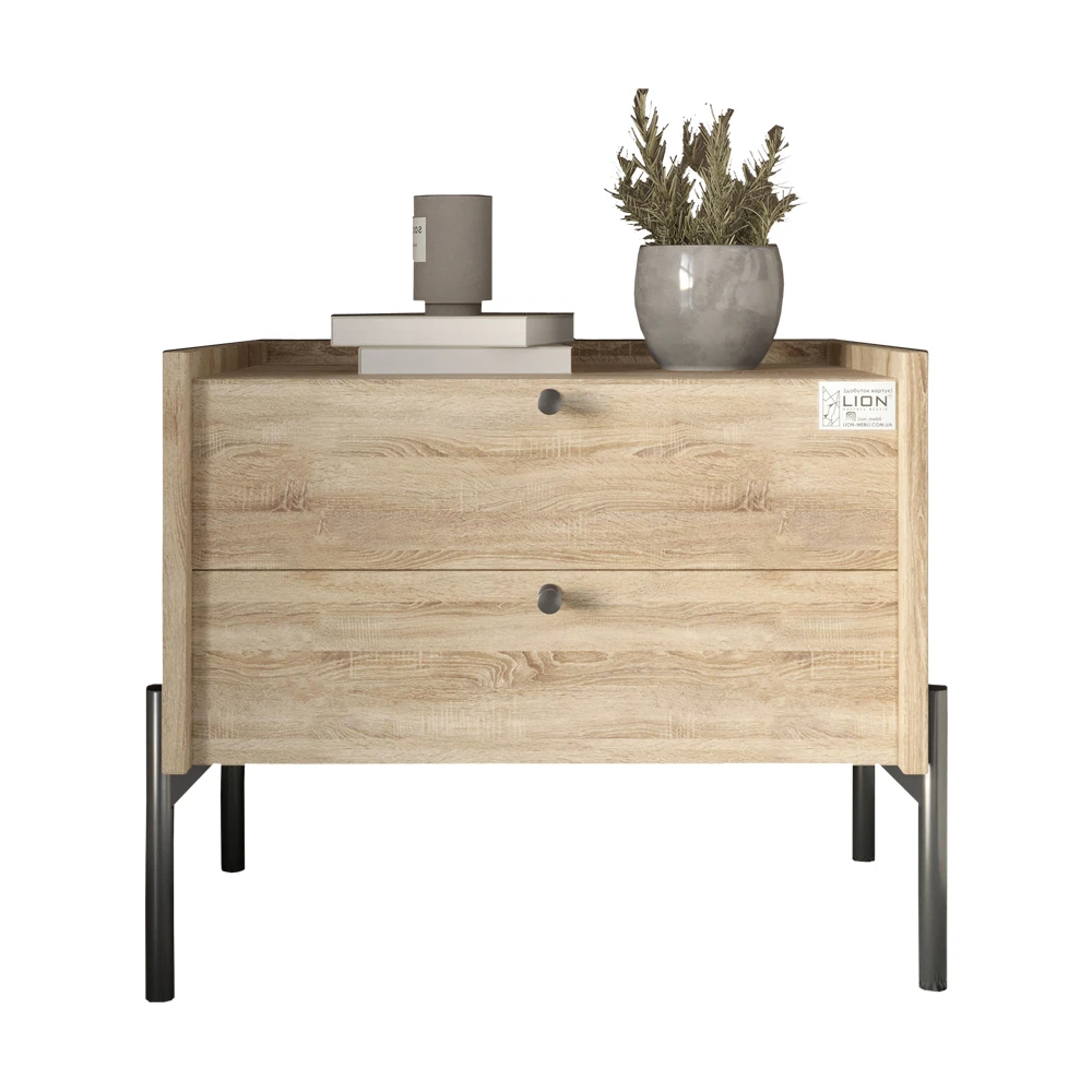 Тумба приліжкова LION Wood з двома шухлядами Дуб Сонома (чорні ножки) (LION-041352)