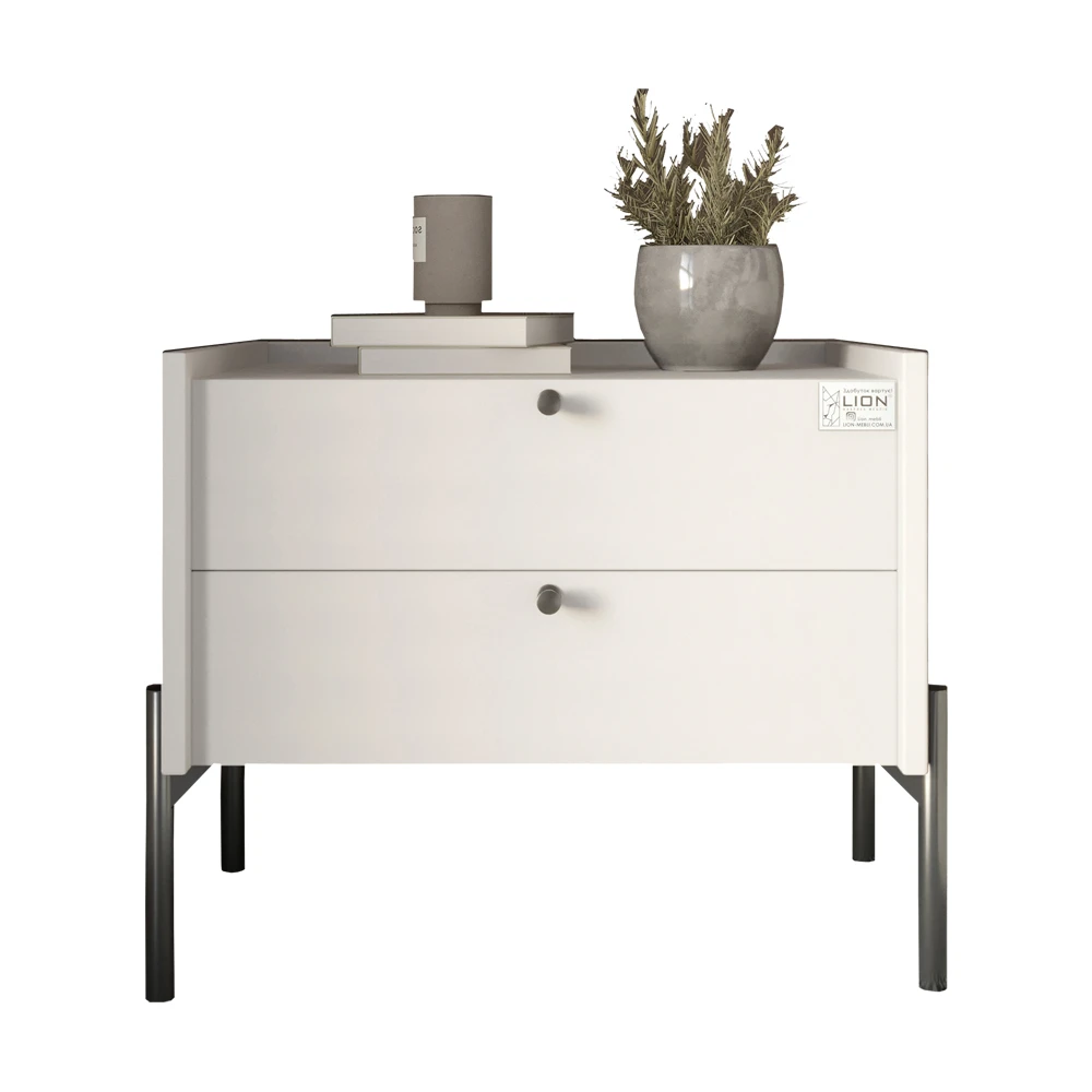 Прикроватная тумба LION Wood с двумя ящиками Нимфея Альба (белый) (черные ножки) (LION-041358)