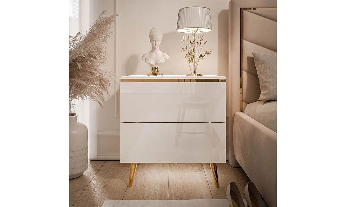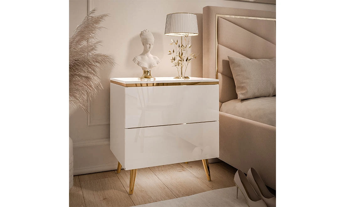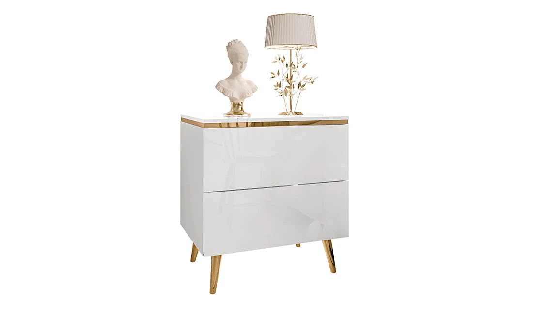 Тумба приліжкова Моніка 2Ш білий глянець/золото